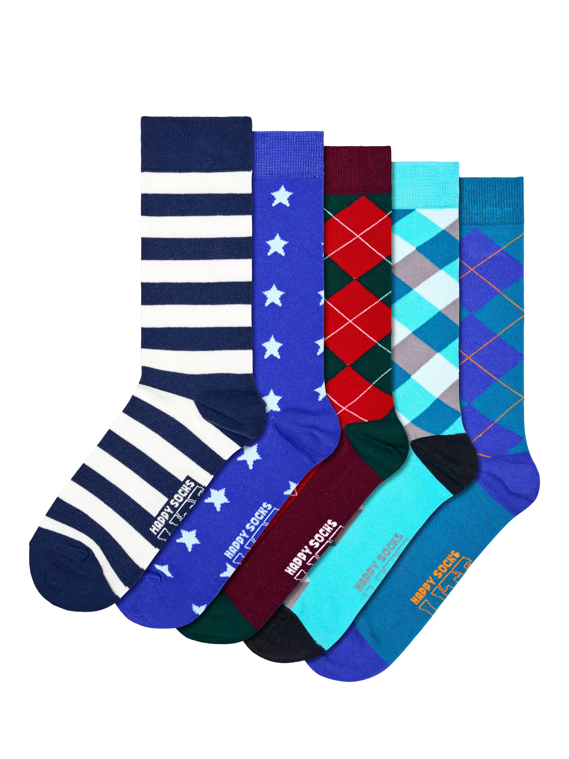 A 5-pack of socks with classic but brightly coloured designs, made from a soft cotton blend with reinforced heel and toe.