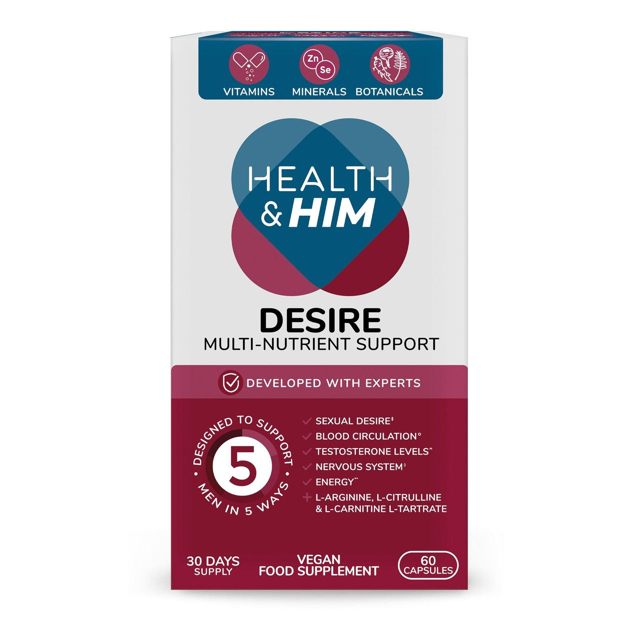 This Health & Him Desire Multi-nutrient Support is formulated to address the specific nutritional requirements of men across various life stages. It combines essential vitamins, minerals, and targeted botanicals for comprehensive wellness. This supplement is designed to support men's nutritional health and overall wellbeing through careful, research-backed formulation.