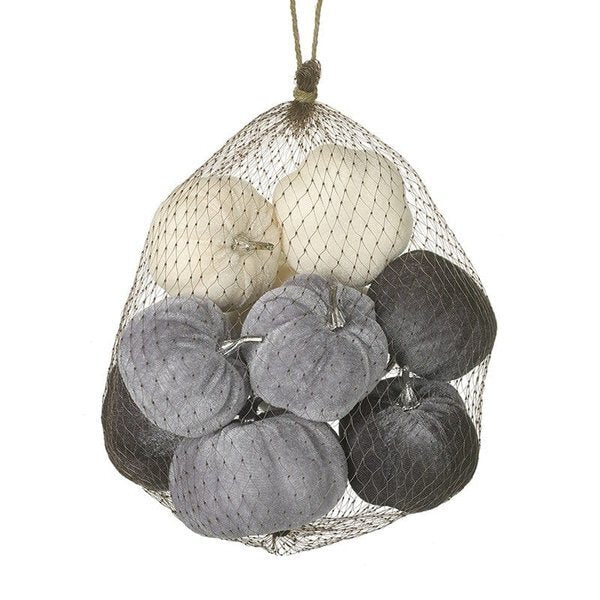 Product Information 8 x 7 to 6 x 7 cm grey and cream velvet pumpkins elegant twotone design for your display