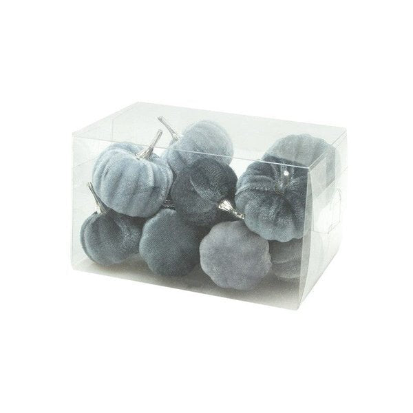 Product Information variety of sizes set of 12 grey velvet pumpkins with silver stalks a luxurious touch