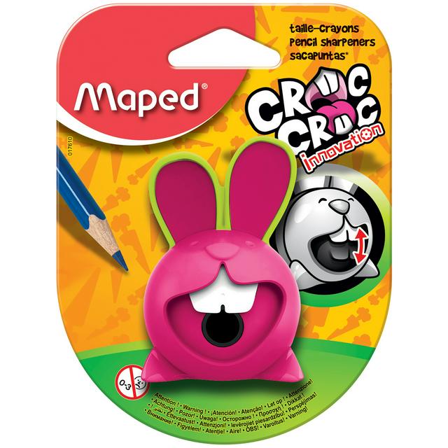 This charming Helix Maped Croc Croc sharpener features a fun, distinct rabbit design for your desk collection. Sharpening becomes an interactive experience as the rabbit's teeth visibly move when the pencil is turned in the correct direction. It provides a novel way to approach routine stationery needs in a lighthearted manner.