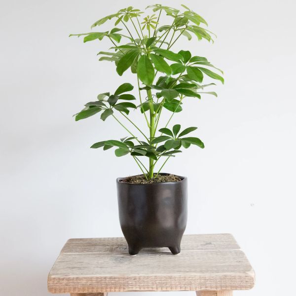 The Hello Houseplants Dwarf Umbrella Tree, known as Schefflera Arboricola Nora, is a compact and elegant living plant suitable for indoor decoration. It is distinguished by its dense, glossy green foliage that introduces a distinct tropical aesthetic to your space.