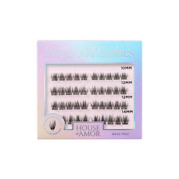 - glued for effortless application. Enjoy a seamless look that lasts 24 hours or more. Lashes have never been easier! Our Lazy Girl Lash multipacks contain 40 clusters which are pre cut, pre glued and ready to apply