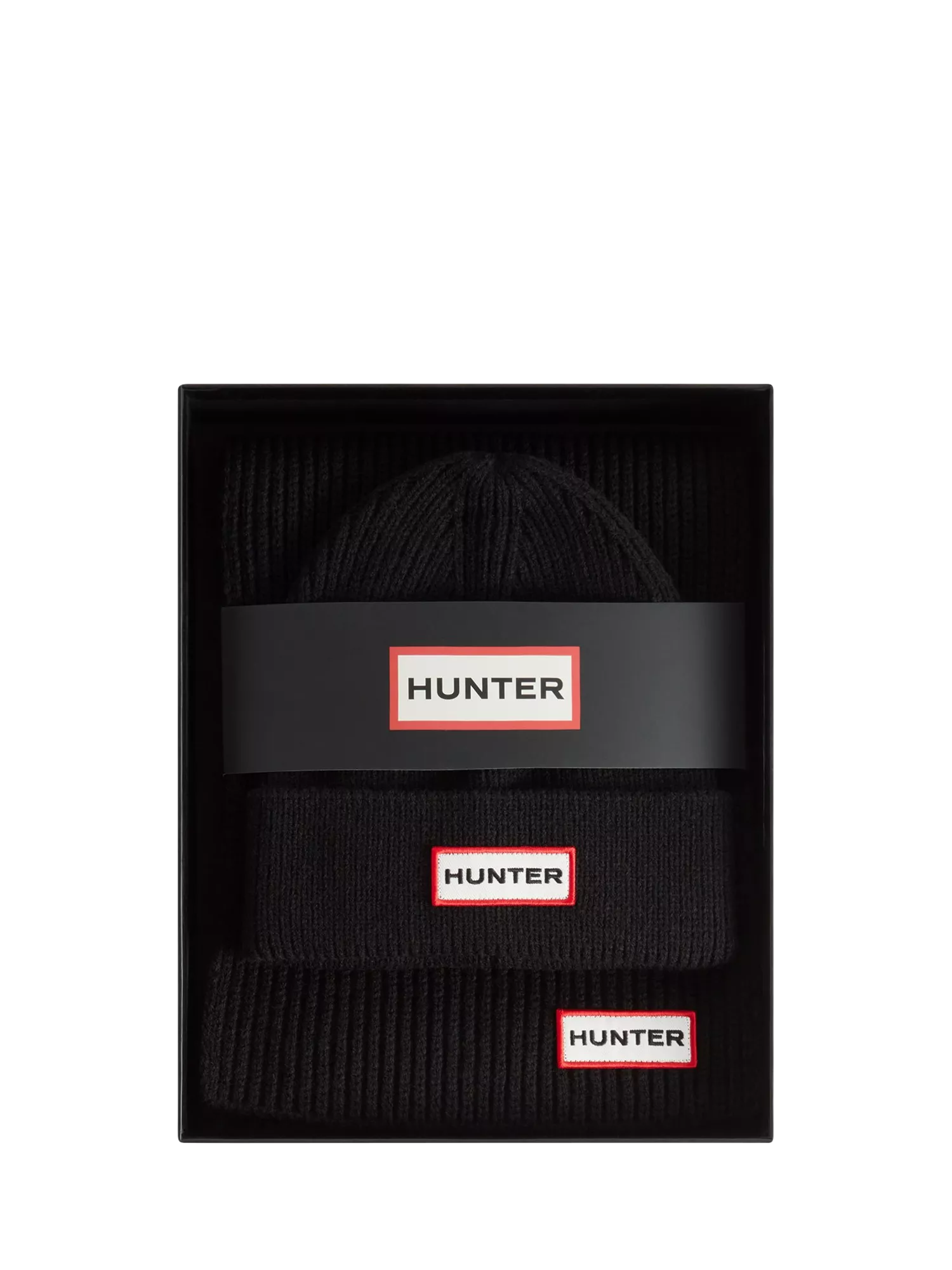 Stay cozy and stylish this winter with this HUNTER knitted beanie and scarf set—the perfect accessory for chilly days. This matching set makes a wonderful gift or a luxurious addition to your own winter wardrobe, complete with a gift box.
