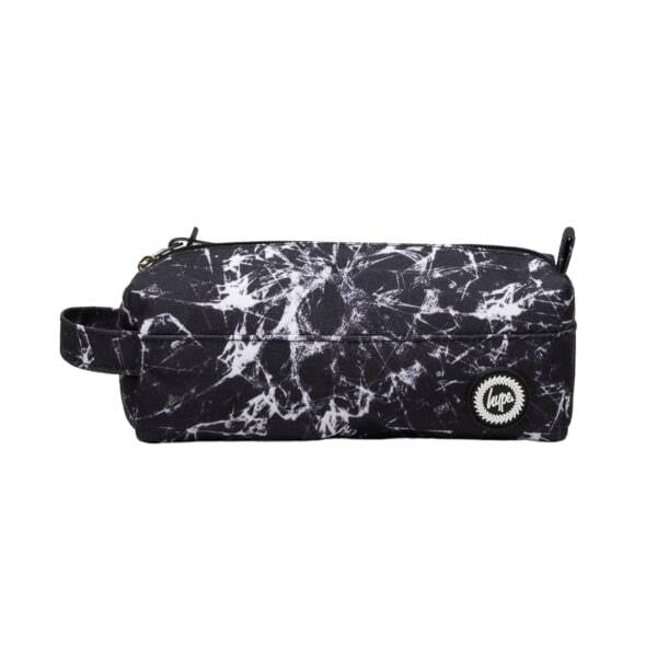 This Hype pencil case features a distinctive abstract design, showcasing a unique cracked effect finish on the exterior. Constructed from durable branded polyester, it is built for reliable everyday use by students or professionals. The item offers a functional capacity of 12 litres for storing stationery items.