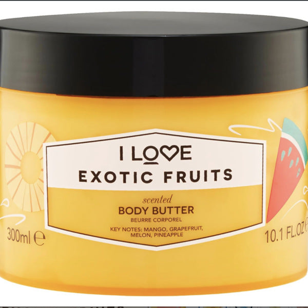 Enjoy a touch of indulgence everyday with I Love’s range of super rich body butters. Packed with the perfect blend of naturally nourishing Shea Butter & anti-oxidant rich Coconut Oil, they will leave your skin silky soft and beautifully hydrated. An everyday treat that will leave you feeling oh so soft from top to toe! Wrap your body in this indulgent, buttery goodness. This beautifully scented Body Butter is rich, creamy and provides all day moisturisation. It contains regenerating and nourishing Shea Butter and organic Coconut Oil which intensively moisturises skin. This non greasy, fast drying body butter also contains a luxurious blend of natural skin loving moisturisers, including Pro Vitamin B5, Vitamin E, natural fruit extracts & Aloe Vera extract to leave it feeling instantly nourished, soft & smooth to touch. These Body Butters contain 85% of naturally derived ingredients and are designed for everyday use.