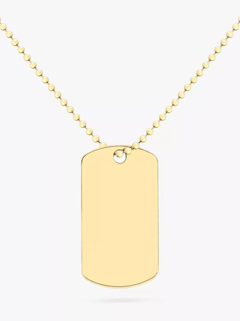Show someone special how much you care with this personalised dog tag style necklace from IBB. Made from 9 carat yellow gold with an adjustable lobster clasp, you can personalise it with a name or initials, either vertically or horizontally, or you can choose one of the many symbols - see the table below for how to make this gift special.