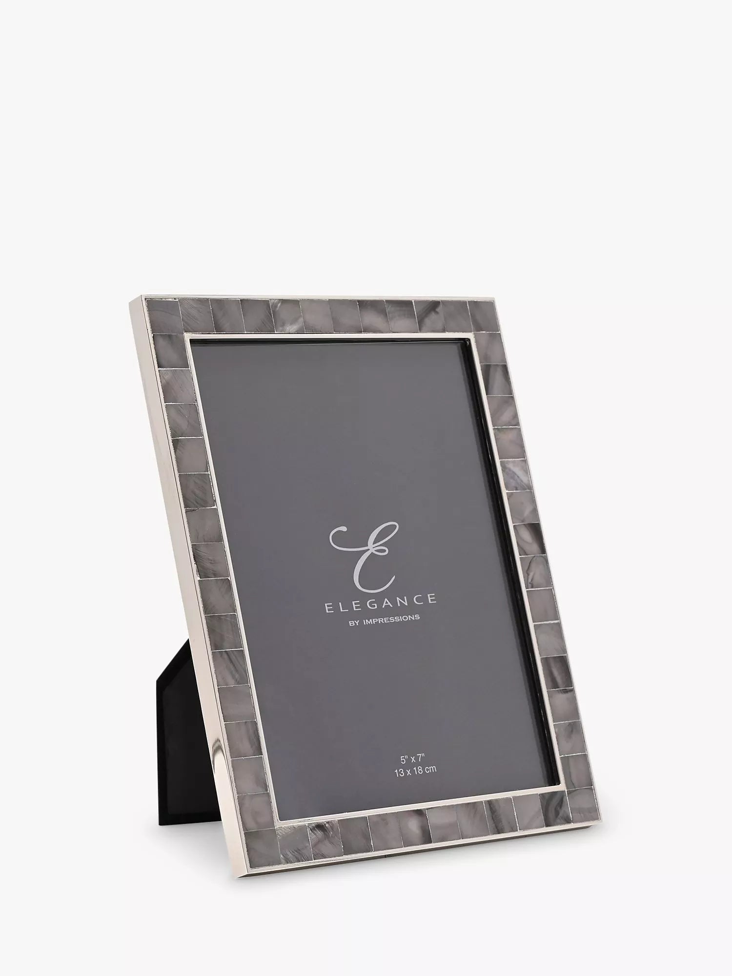 An Elegance nickel photo frame inlaid with mother of pearl. A true statement piece for treasured photographs. Complete with a black velveteen standing strut and luxury signature Elegance gift box.