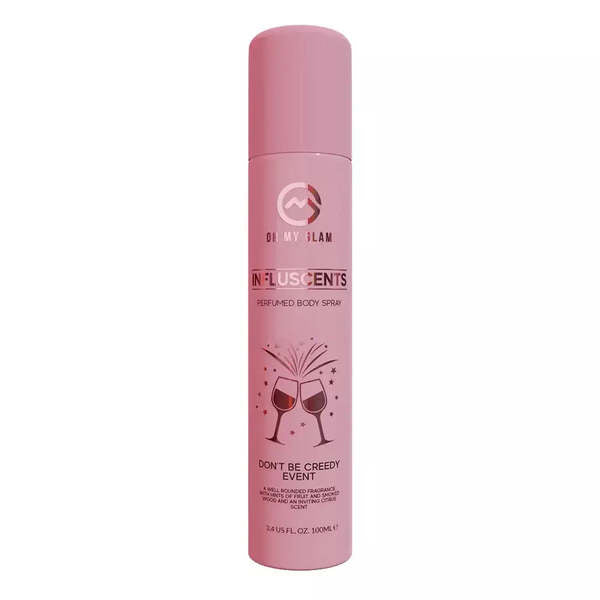 The Oh My Glam Influscents Body Spray in 'Don't Be Creedy: Event' offers a premium fragrance experience in a convenient 100ml size. This product is designed for refreshing use throughout the day.