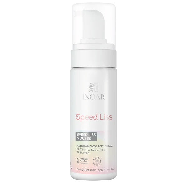 Read MoreInoar Speed Liss Mousse contains new technology based on an emollient and smoothing blend that deeply treats the hair, leaving it aligned and frizz-free, promoting shine and softness. With thermal protection, Speed Liss Mousse aligns the hair, smoothing it slightly and giving it shine and manageability. It also strengthens, stimulates collagen production and reconstructs damaged hair.