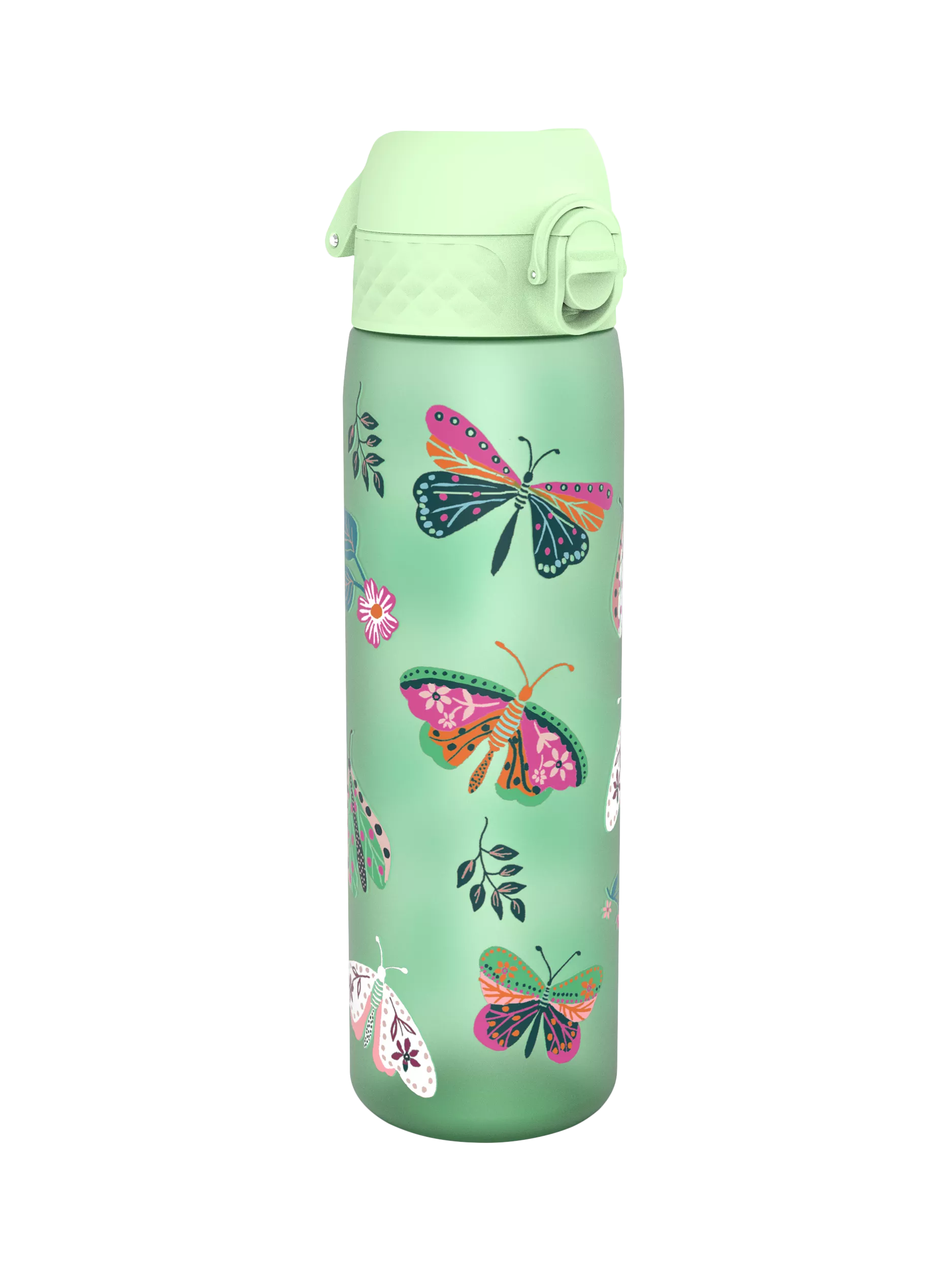 Slim and leak-proof, this wild butterflies-print drinks bottle from Ion8 easily fits in a bag to take with you on your travels for hydration on the go. It fits into all car cup holders and pockets on kid and adult backpacks. When closed, the spout and vent are completely sealed to prevent leaks.