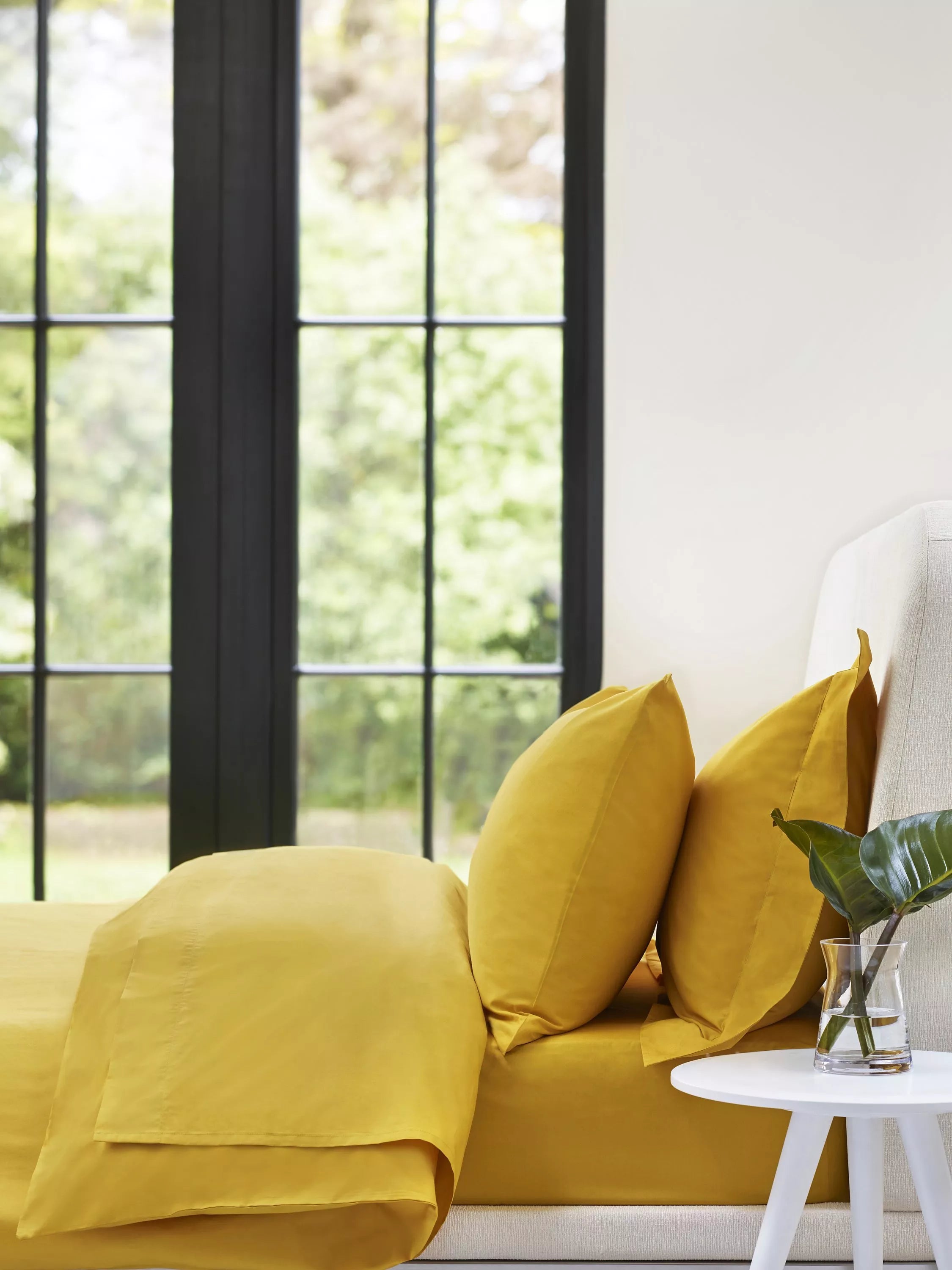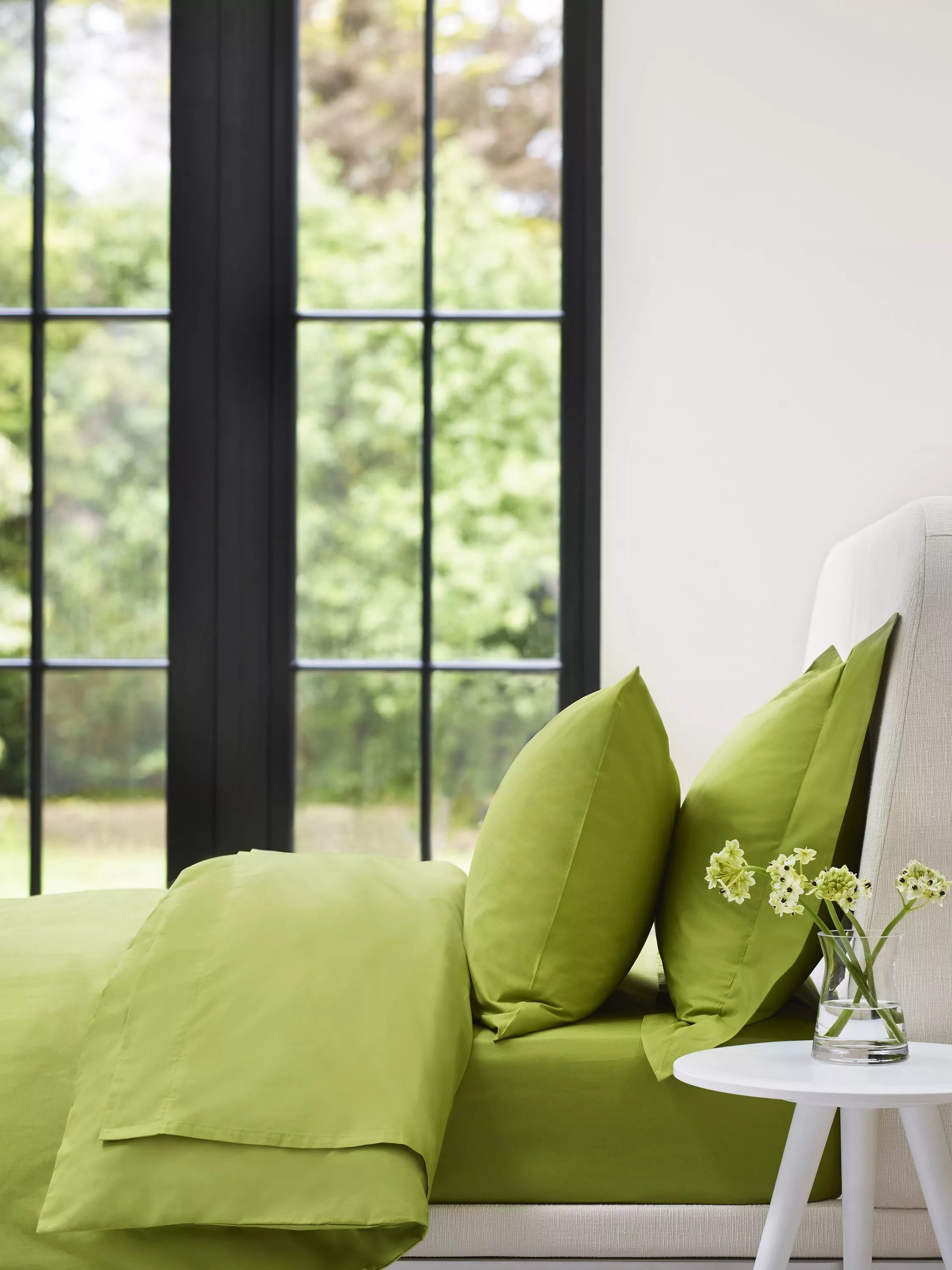 This traditional percale plain weave, in a one over, one under thread pattern, comes in an extra-high 300 thread count to give a matt, crisp and cool medium-weight fabric that feels smooth and soft to the touch. It is available in standard and Oxford pillowcases, duvet covers, flat sheets, and deep fitted sheets.