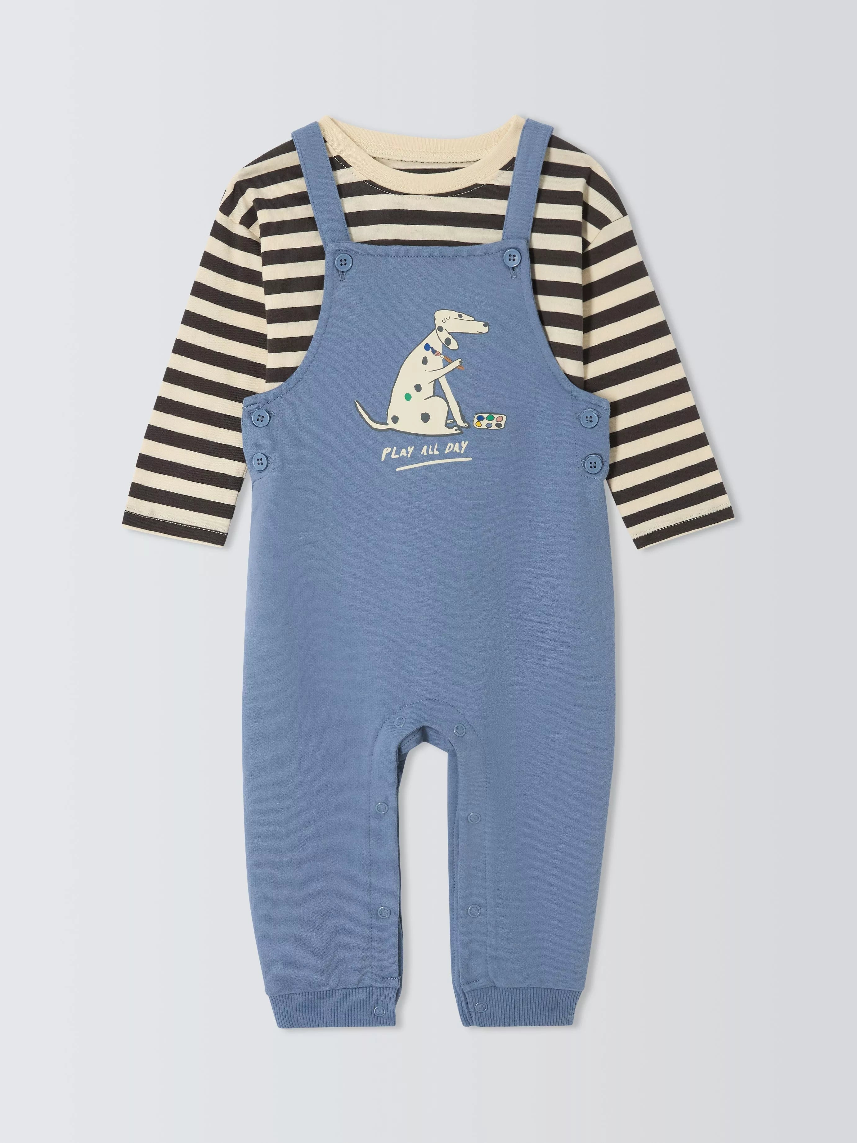 Made from 100% cotton, this set comes with a striped long-sleeve top and matching dungarees with a 'Play All Day' dog on the chest.
