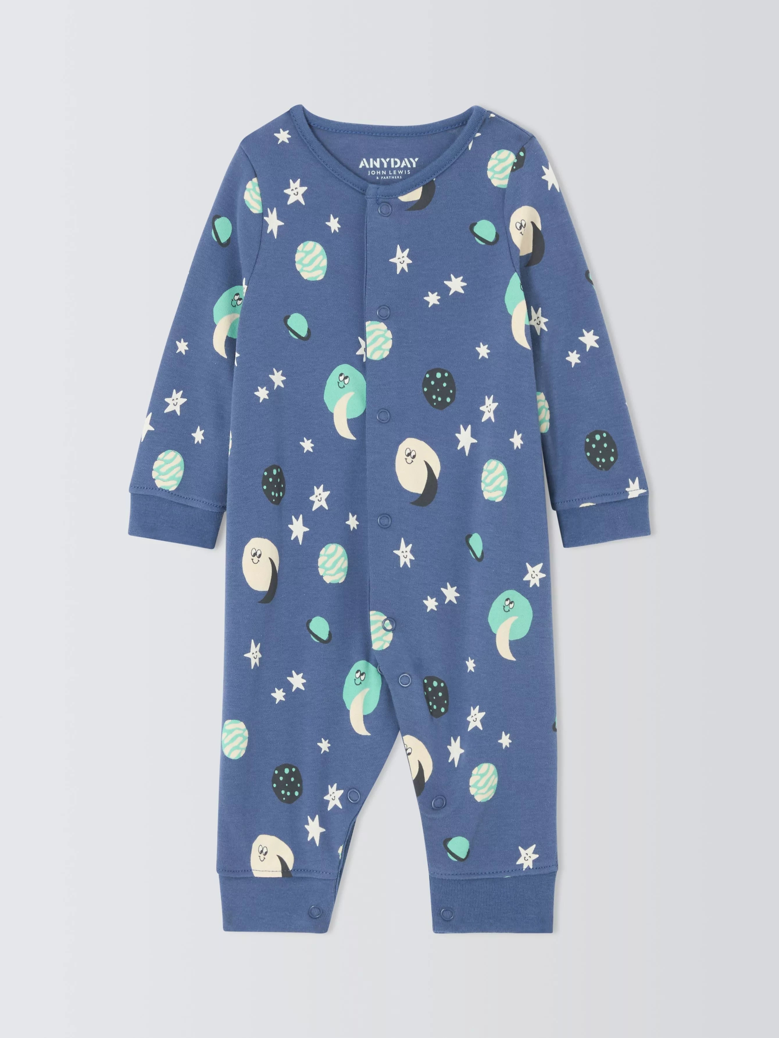 Give your little one sweet dreams with this adorable John Lewis ANYDAY baby space sleepsuit. Made from soft 100% cotton, it's perfect for delicate skin and features practical popper fastenings. A charming space-themed print adds an extra touch of fun.