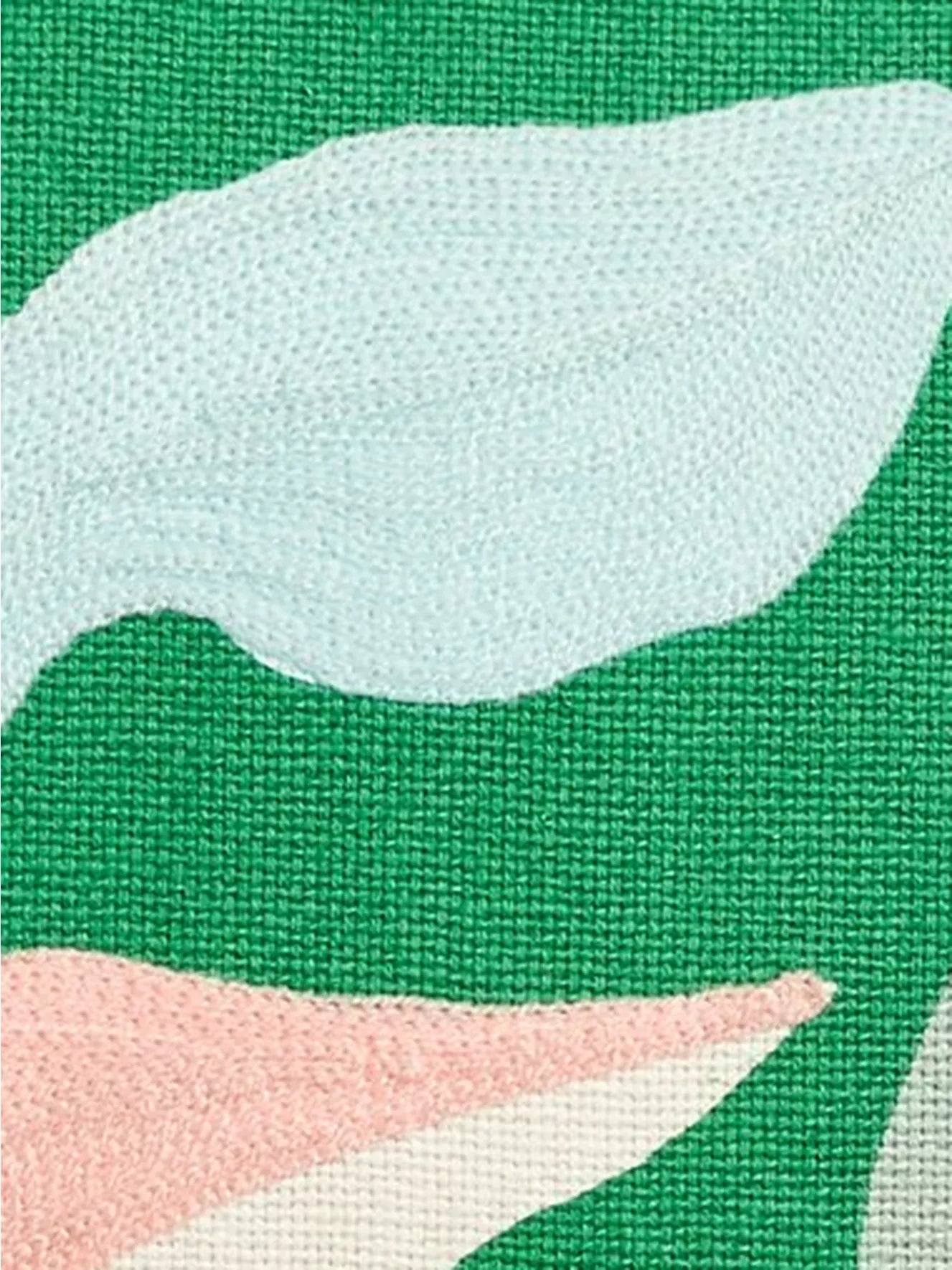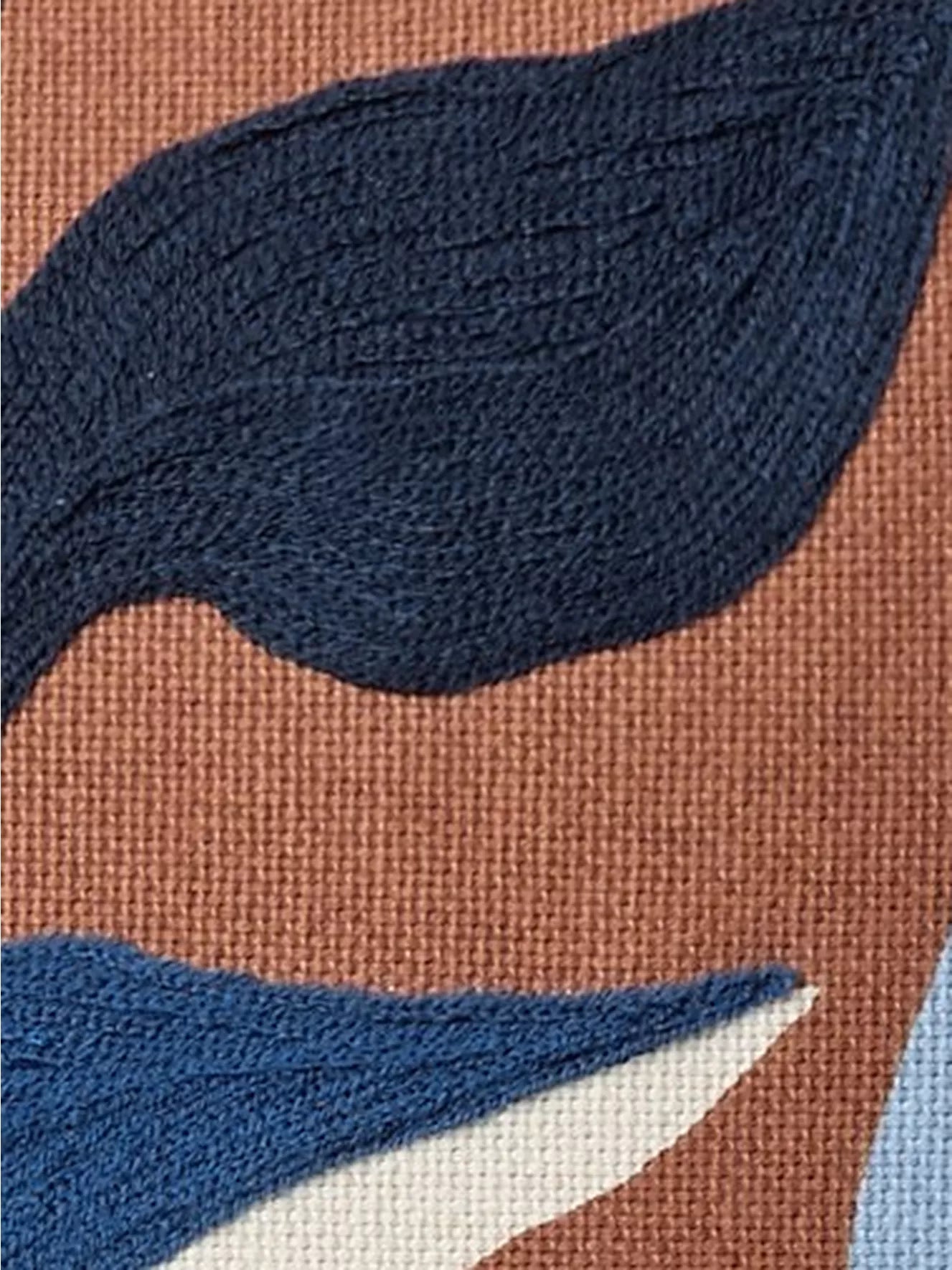 Woven cushion with embroidered details for texture. A vibrant and summery floral design cropped tight to give an abstract look. The reverse is plain.