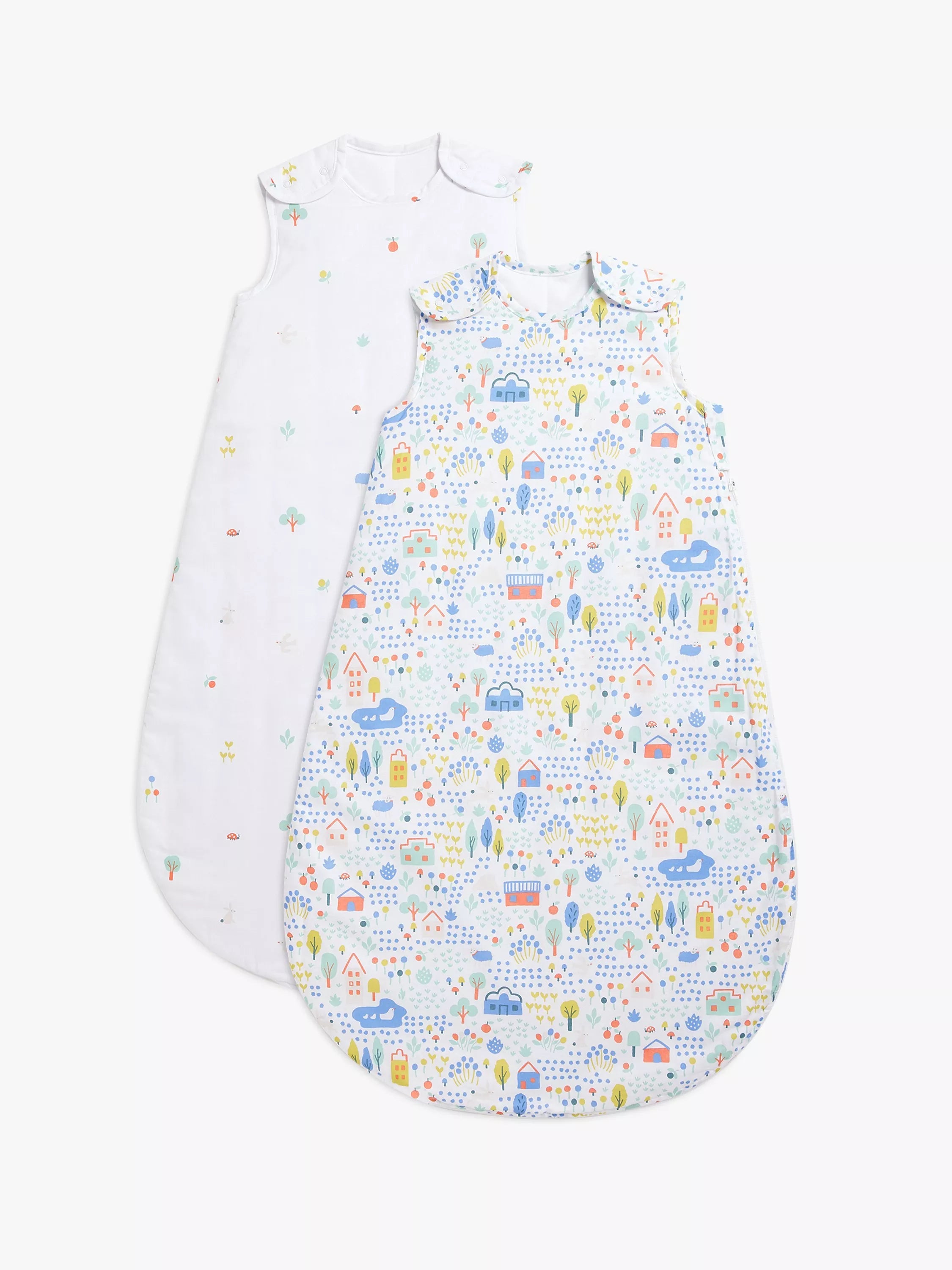 Part of our ANYDAY Happy Houses range, this great value sleeping bag is a handy, practical addition to baby's bedtime routine. In a handy pack of two, one is covered in a pretty fauna print and the other a house print for a sweet look you'll both love.