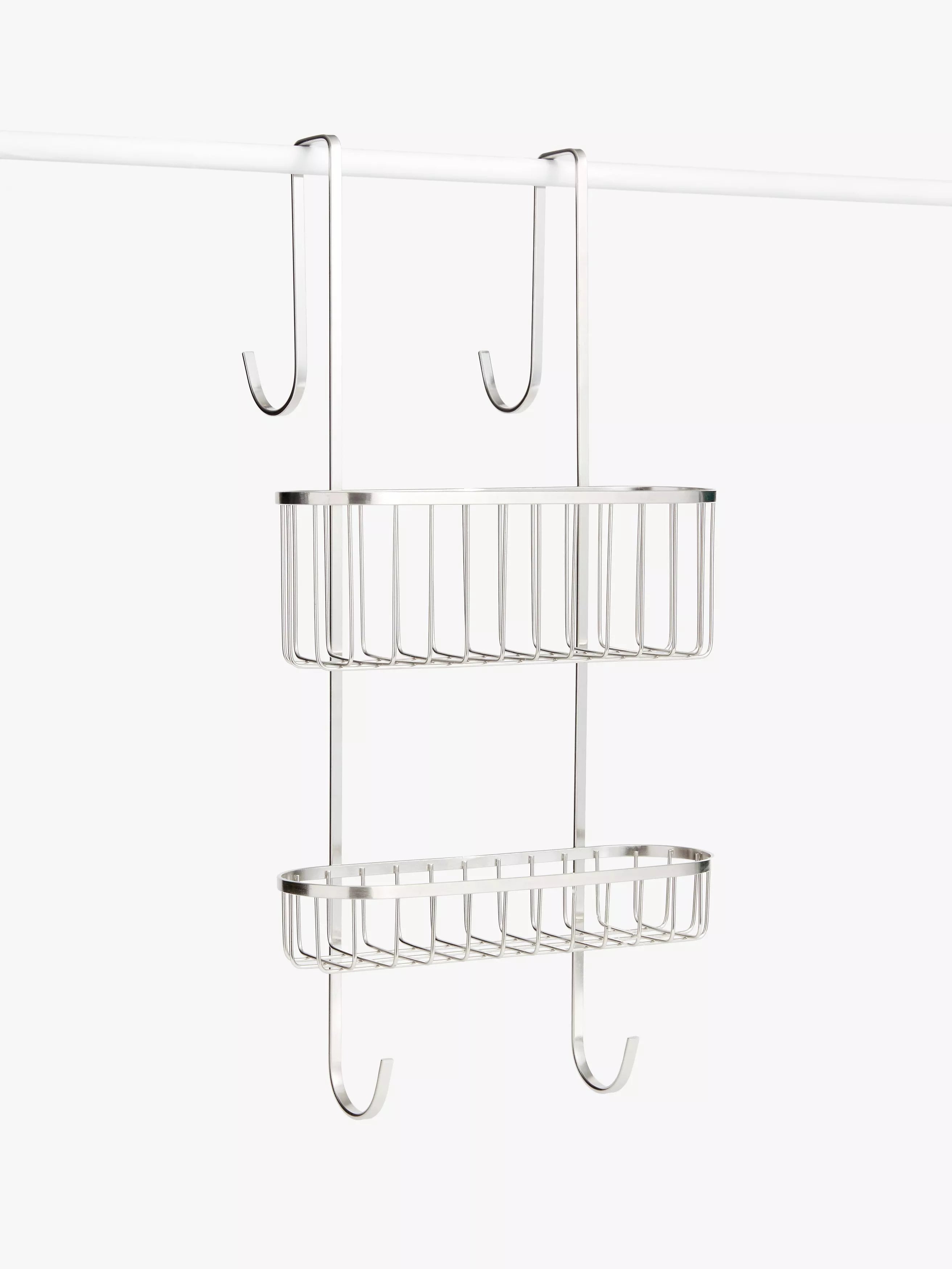 Our two-tier hanging shower basket hooks over your shower screen or shower door (up to 5cm thick), keeping it in place.
