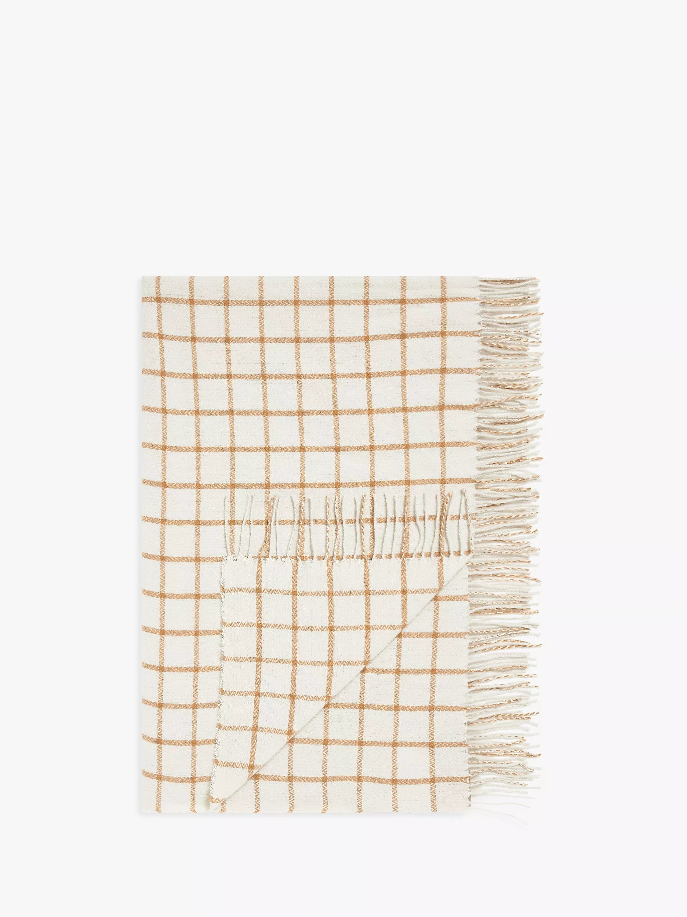 A soft and lightweight throw with a twisted fringe and versatile check pattern.