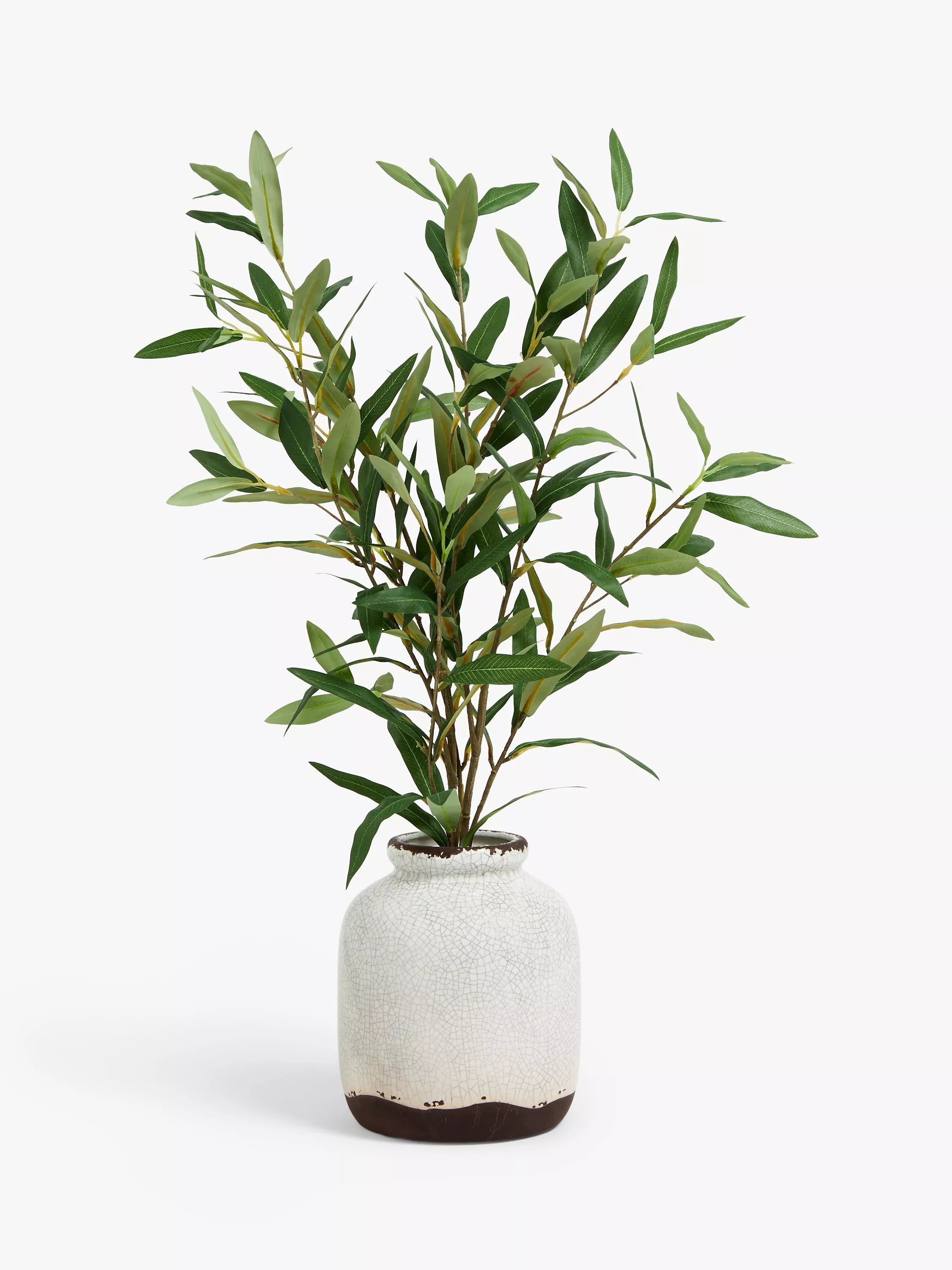 Bring the Mediterranean to your home with this charming artificial olive branch in a ceramic vase. This low-maintenance decorative piece adds a touch of elegance and warmth to any room, perfect for creating a relaxed atmosphere. It's a delightful addition to your home decor, requiring minimal care.