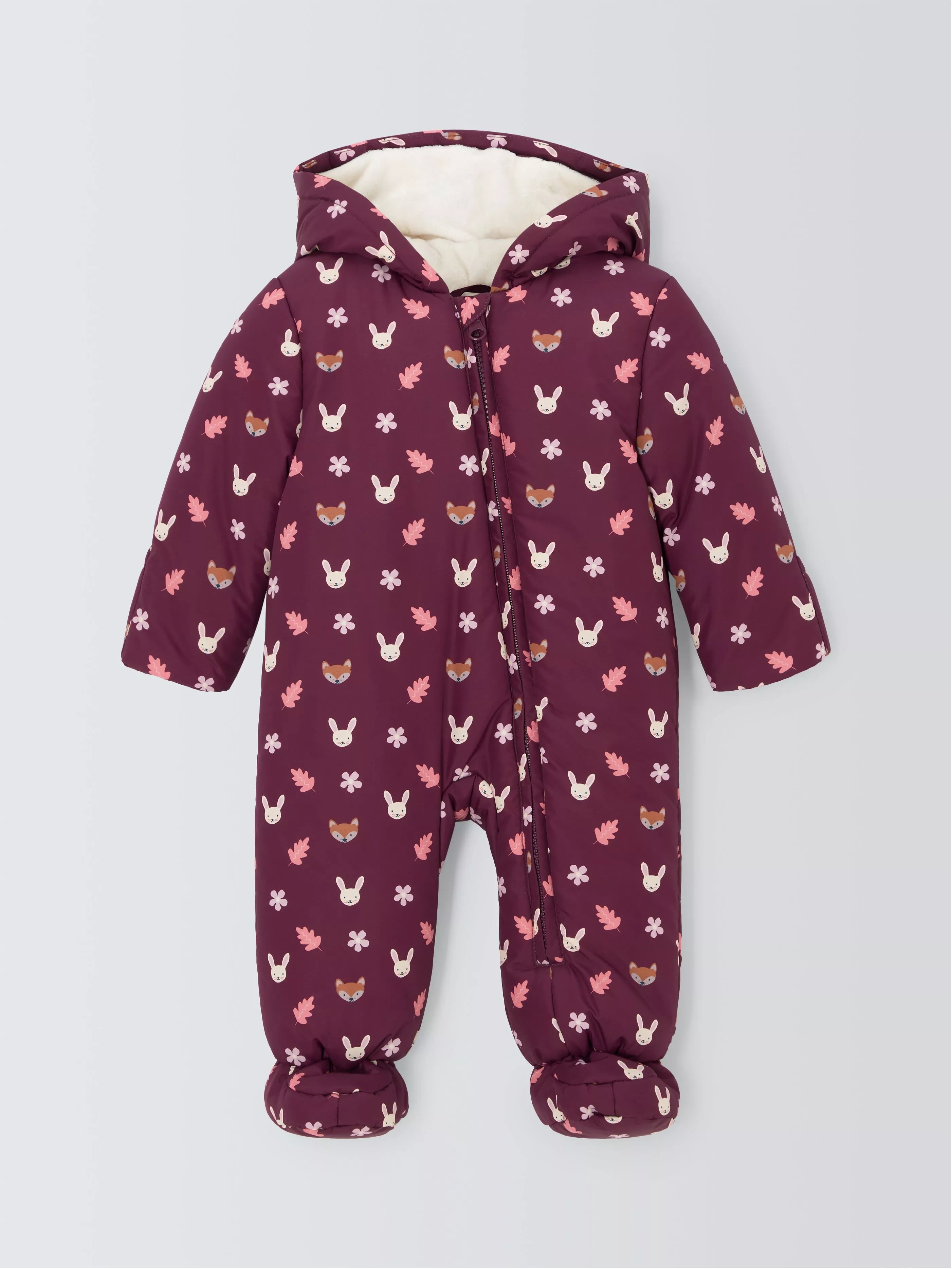 This shower-resistant snowsuit with an all-over animal face print is great for keeping your little one warm with its fleece-lined design. It also benefits from integrated foldover mittens to keep little fingers toasty without the worry of losing them. The zip-through front helps with easy on and offs.