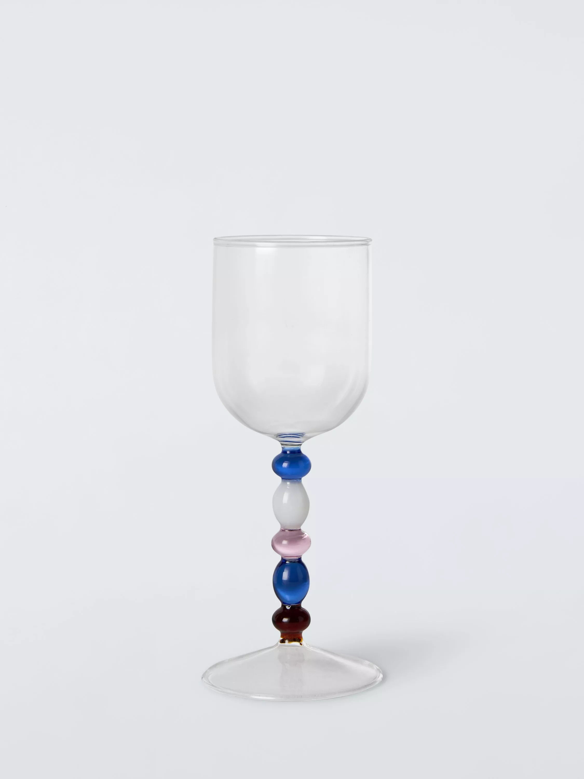 Pair of retro-style wine glasses with a beaded glass stem in different colours.