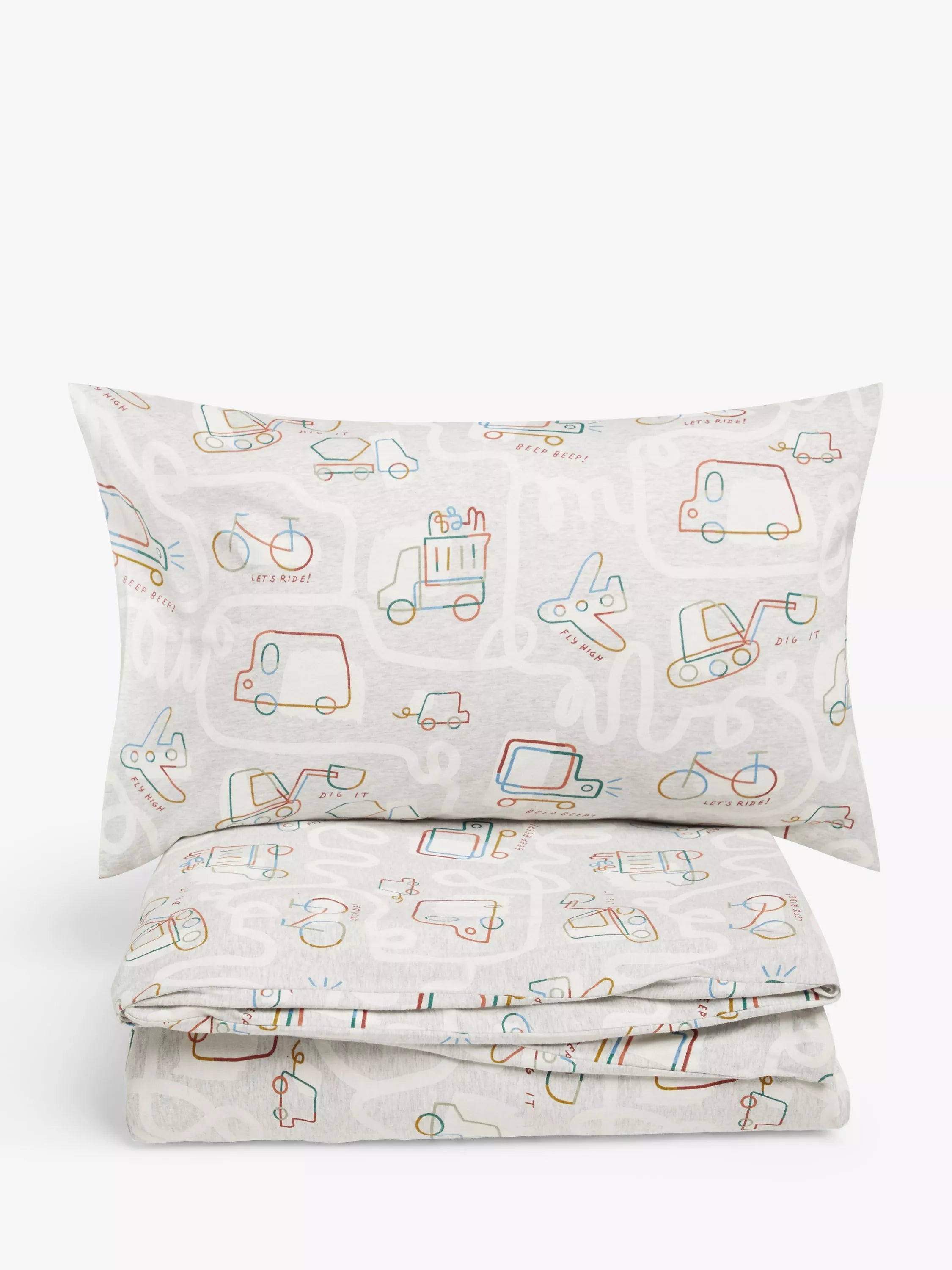 Artistically designed with a mix of transport vehicles, this duvet cover and pillowcase set from our collection is a versatile style that will add an attractive finish both you and your little one will love. Soft and breathable thanks to the pure cotton construction, this bedding will keep them cool throughout the night while lending a colourful touch to their sleep space.