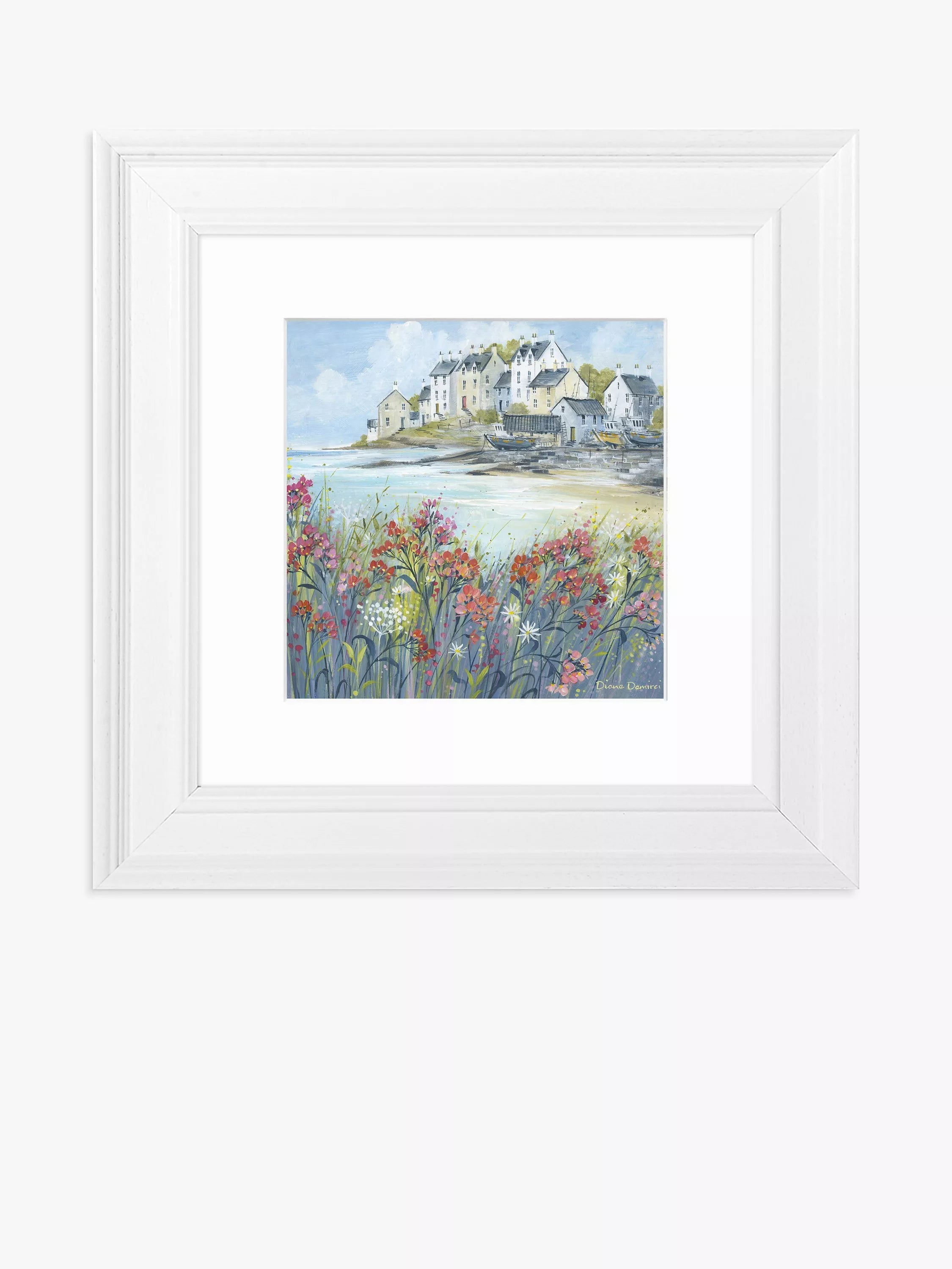 A beach cove scene by Diane Demirci. This framed coastal landscape is presented with a mount, glazed and in a wood-effect frame, ready to hang on your wall.