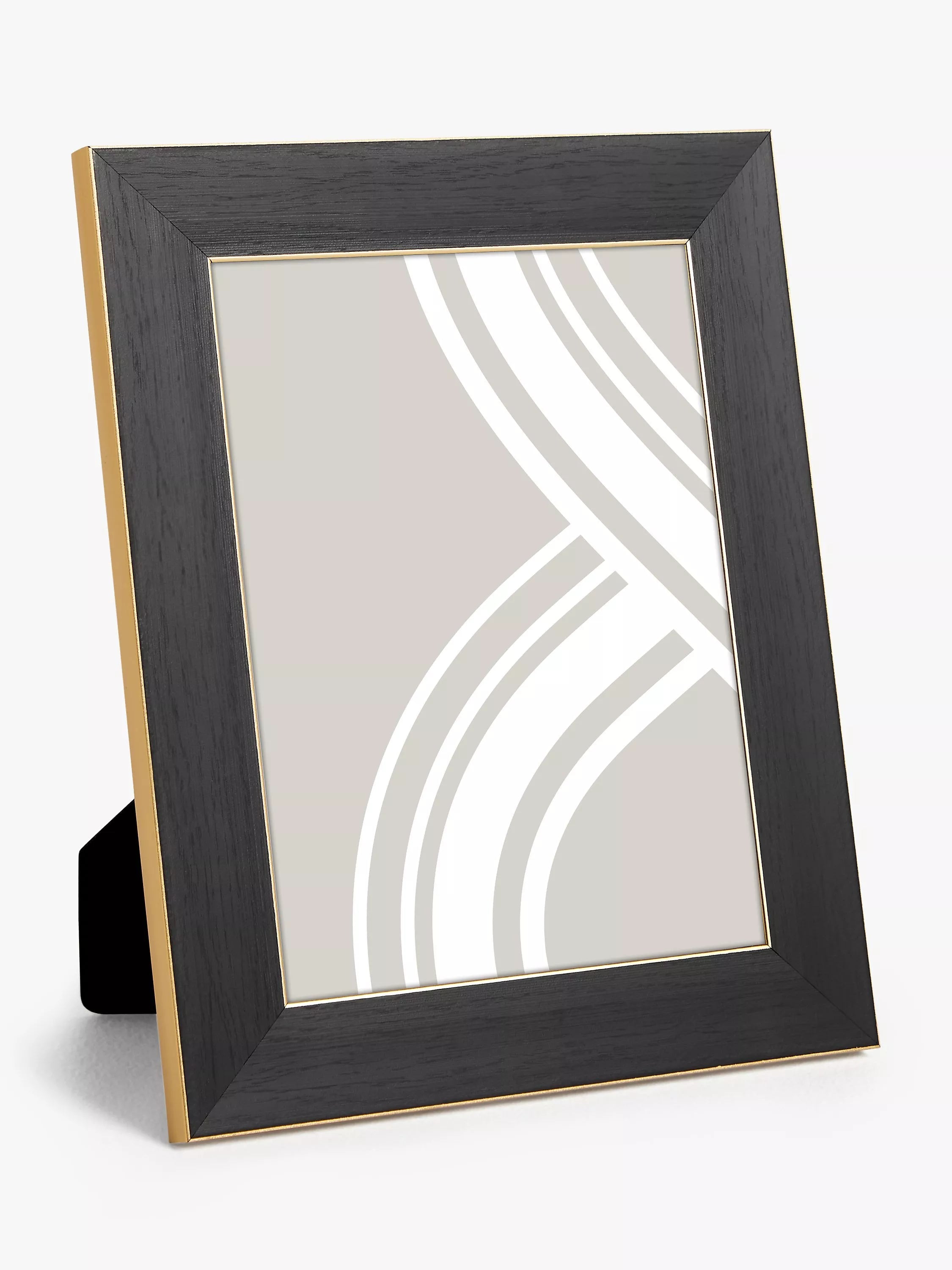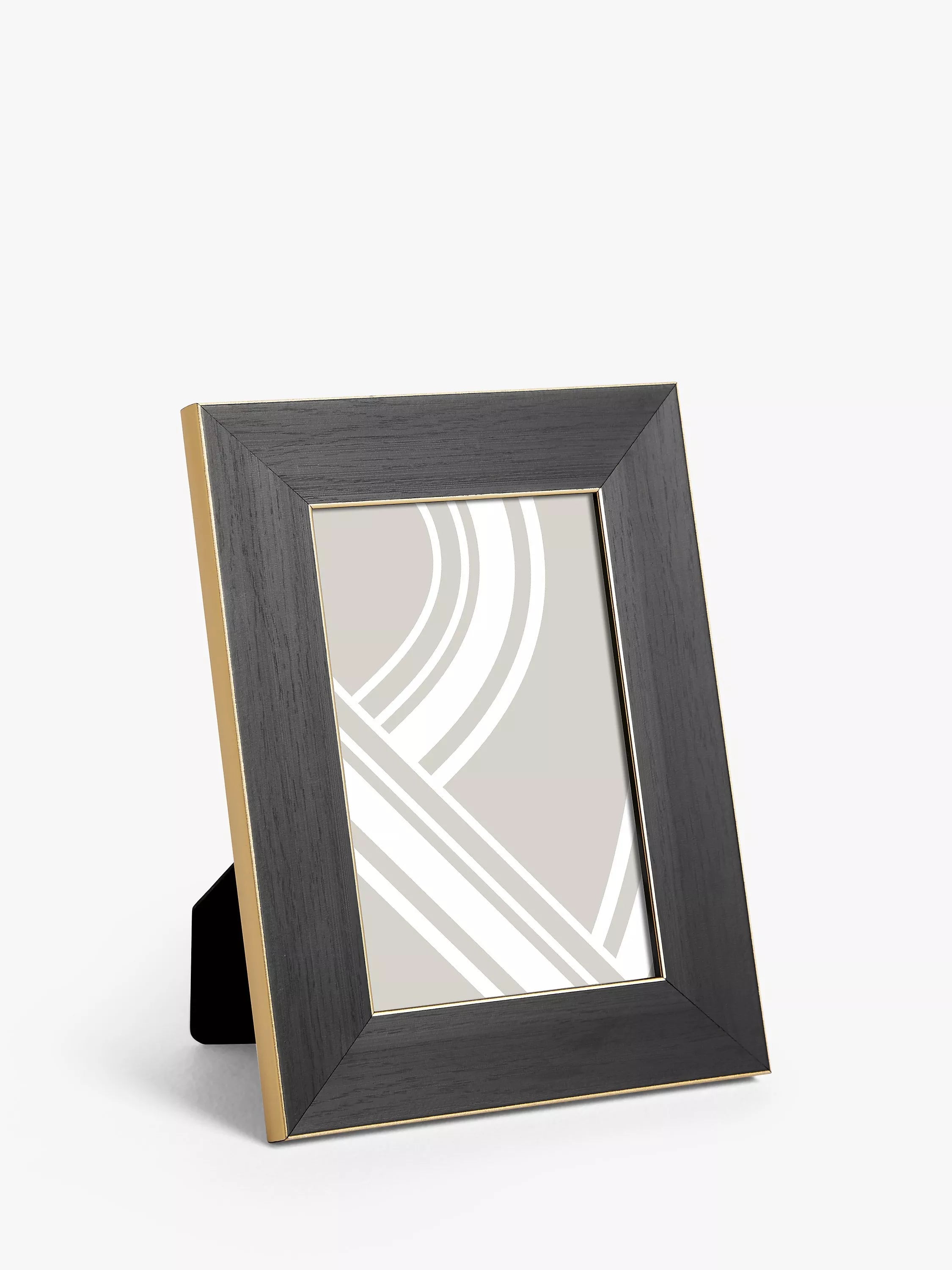 This dark wood-effect photo frame has golden edges creating a smart finish. It can be displayed freestanding or wall mounted, horizontally or vertically.