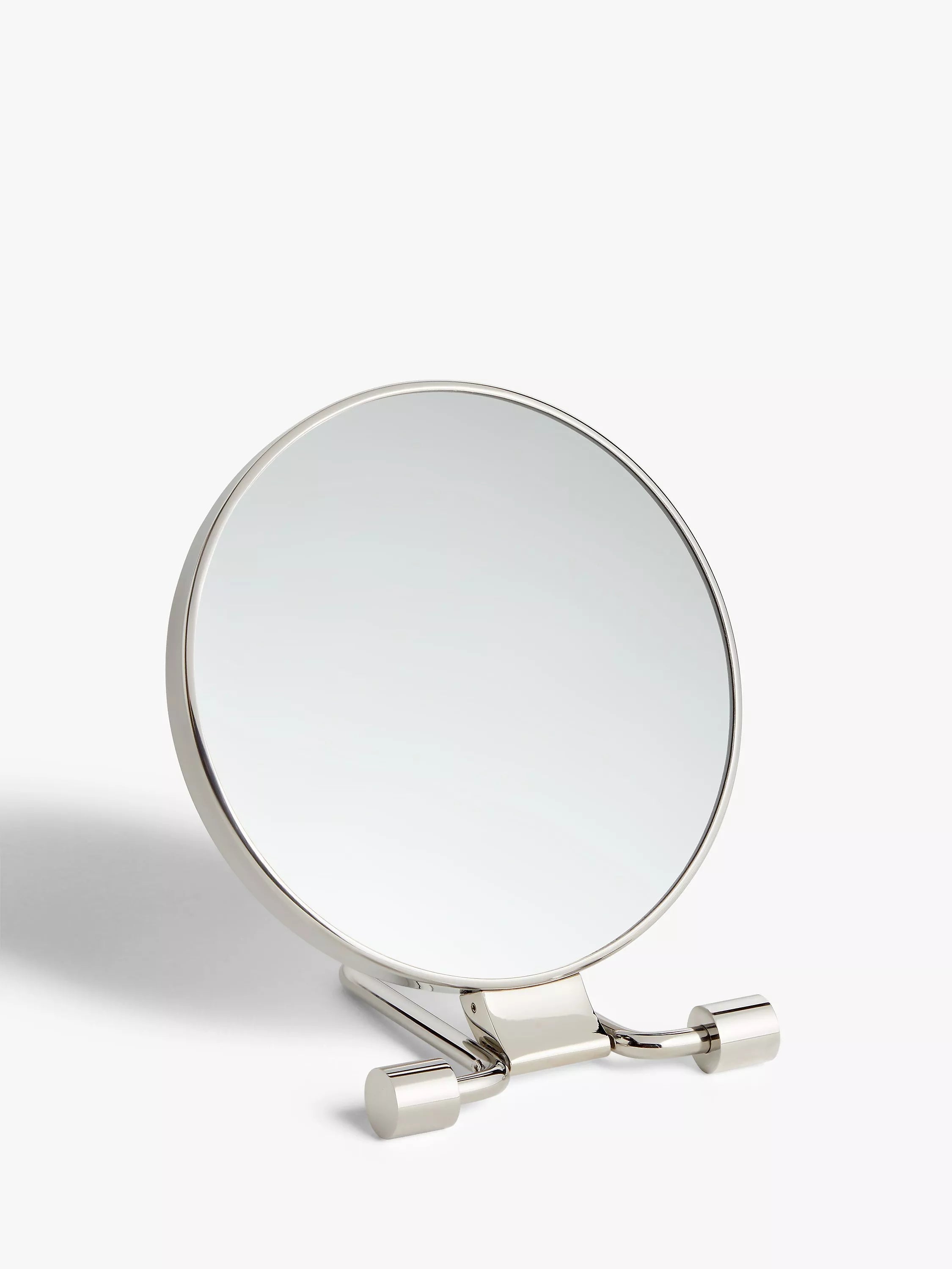 A step-up from a pocket compact mirror, the glass size is comparable to other pedestal mirrors, but it folds flat making it easy to store and take with you on holiday.