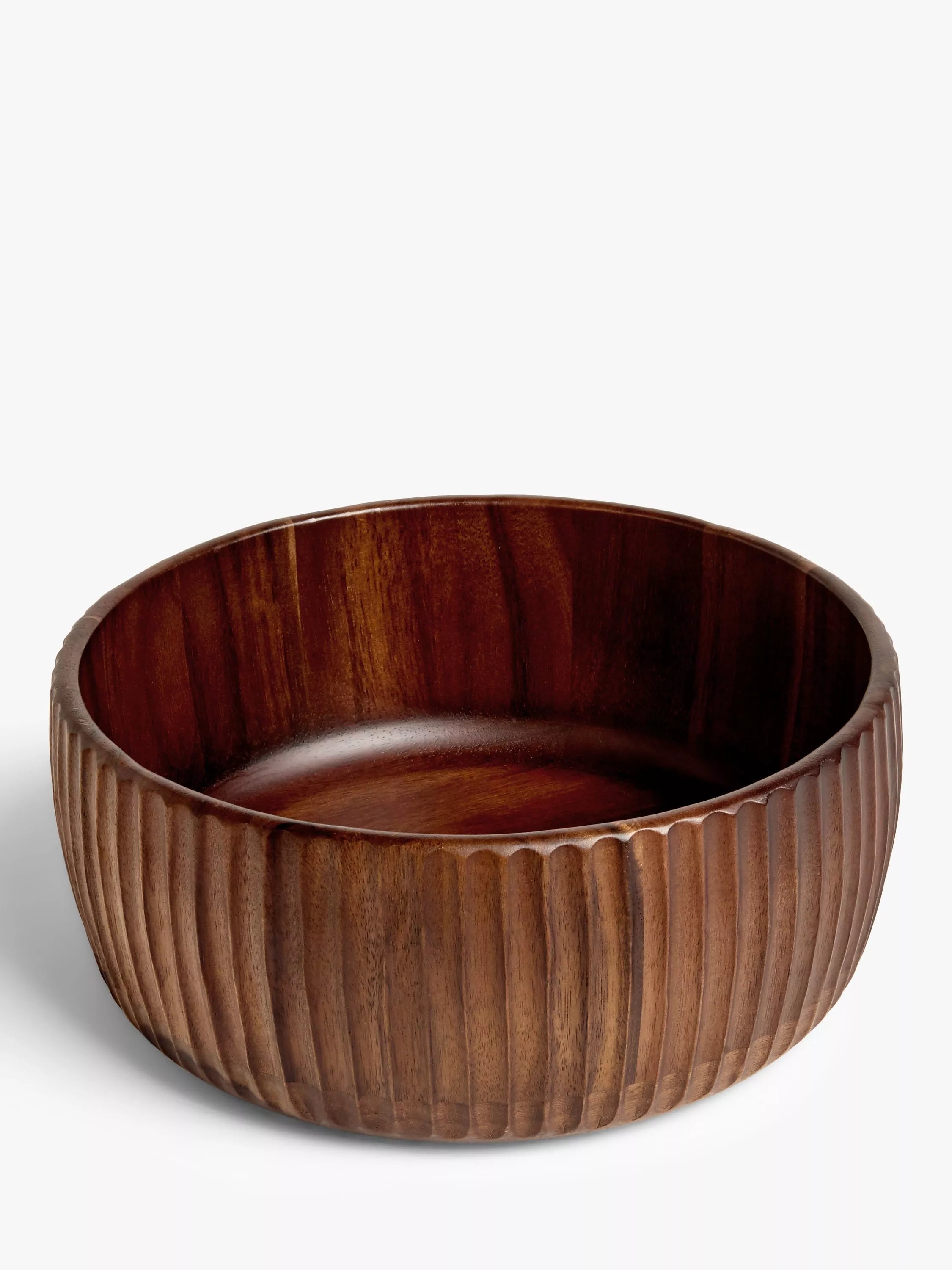 Made of solid acacia with a beautiful wood grain, this salad bowl has a fluted, textured edge.