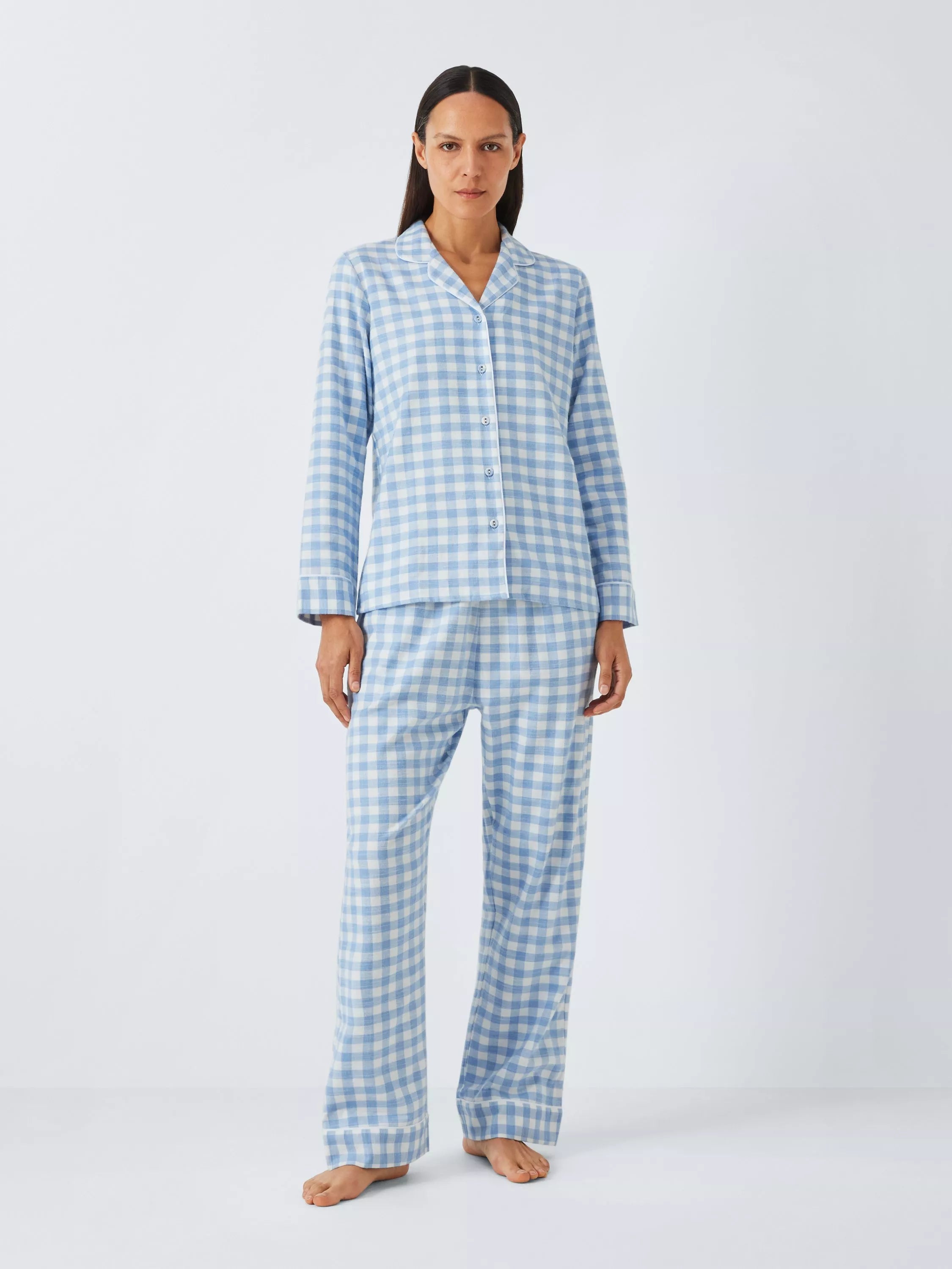 Wrap yourself in comfort with this charming John Lewis gingham brushed cotton pyjama set – perfect for a relaxing night's sleep. This timeless design offers superior quality and luxurious comfort, making it a perfect treat for yourself or a loved one.
