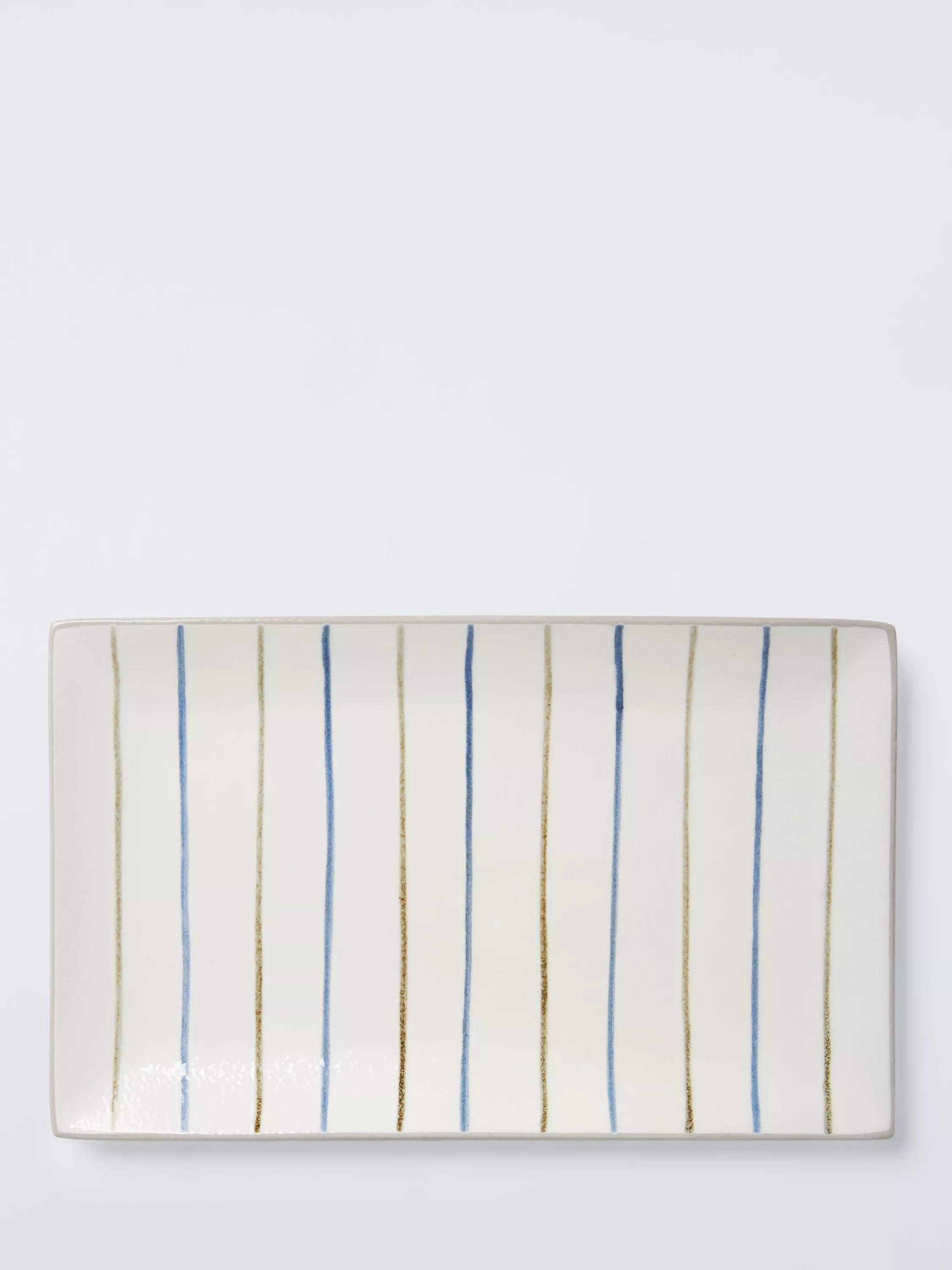 Ceramic rectangular platter with a speckle glaze and handpainted details, creating subtle variations from item to item and making each piece unique.