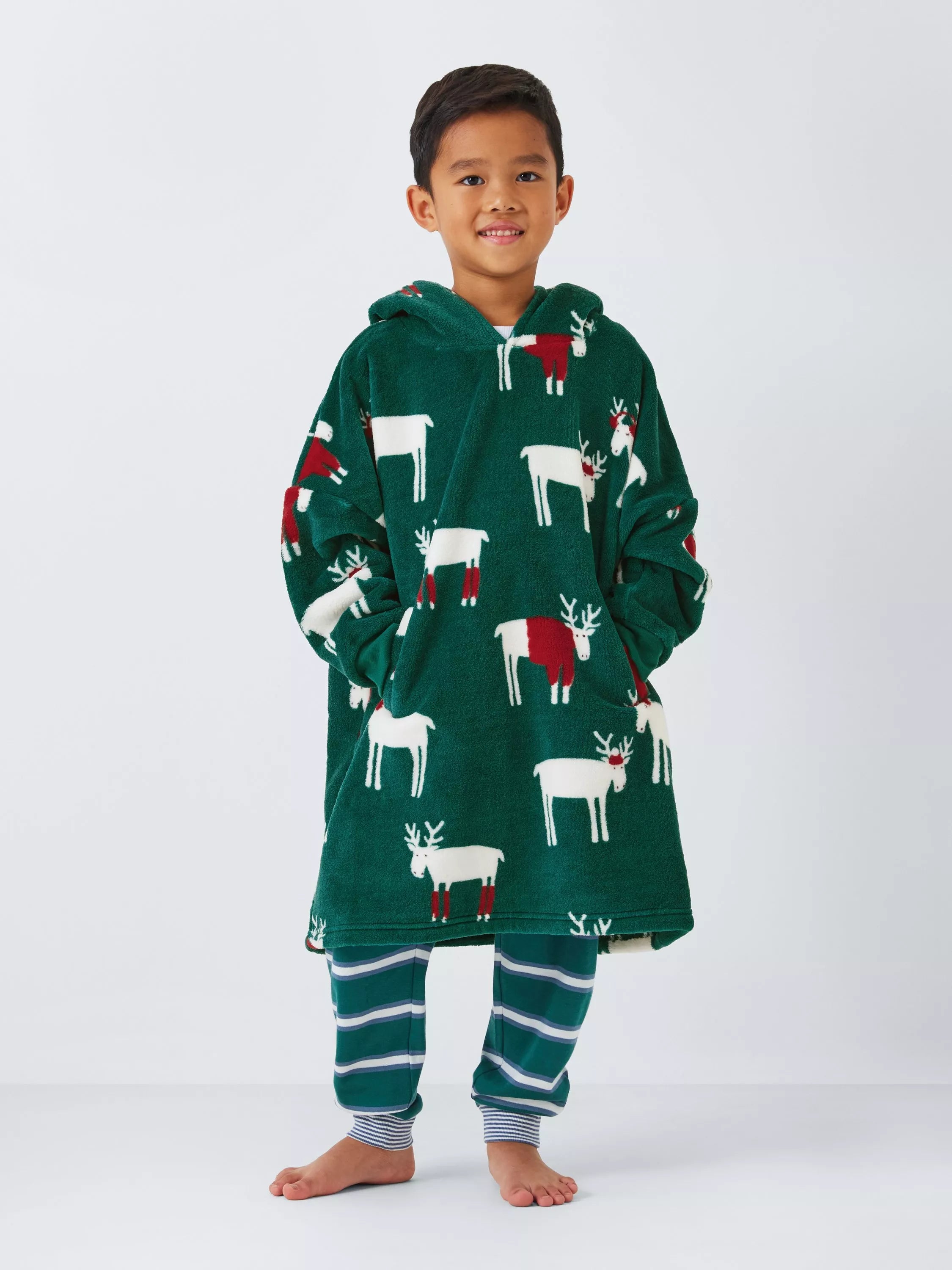 Snuggle up in ultimate comfort with this generously sized hooded blanket, perfect for chilly evenings. Its soft, warm fabric and ribbed cuffs ensure you stay toasty and warm. Ideal for kids of all ages, it's a must-have for cozy nights in.