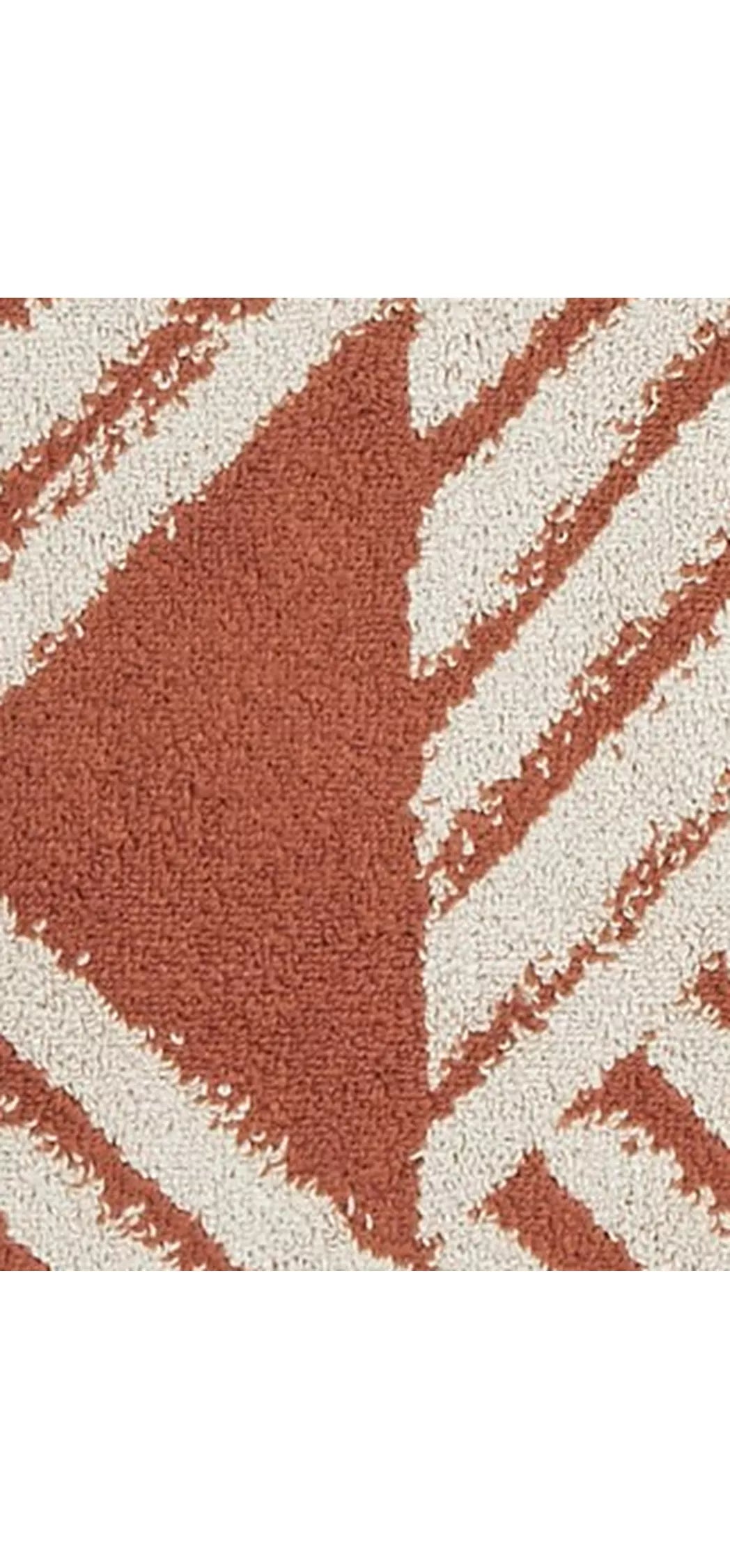 Klo is a Scandi Jacquard with a design of zigzag waves, perfect for a modern bathroom. Choose from warm Baked Clay or cool and classic Lake Blue.