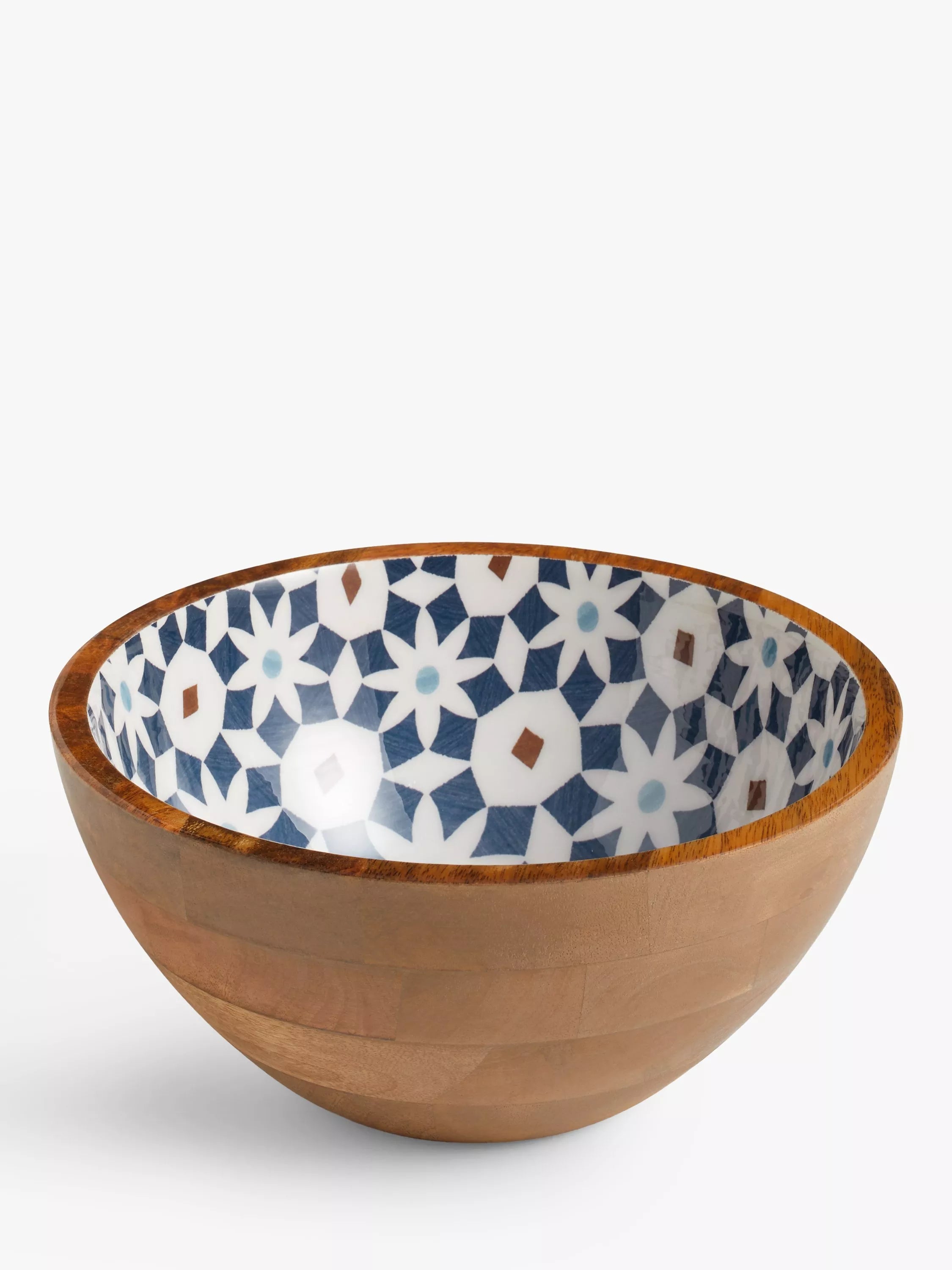 Handmade mango wood bowl with a finish that shows off the natural variations in tone and woodgrain pattern. Inside, the smooth enamelled surface is decorated in a print from our Lisbon range, inspired by the famous patterned tiles found throughout the city.