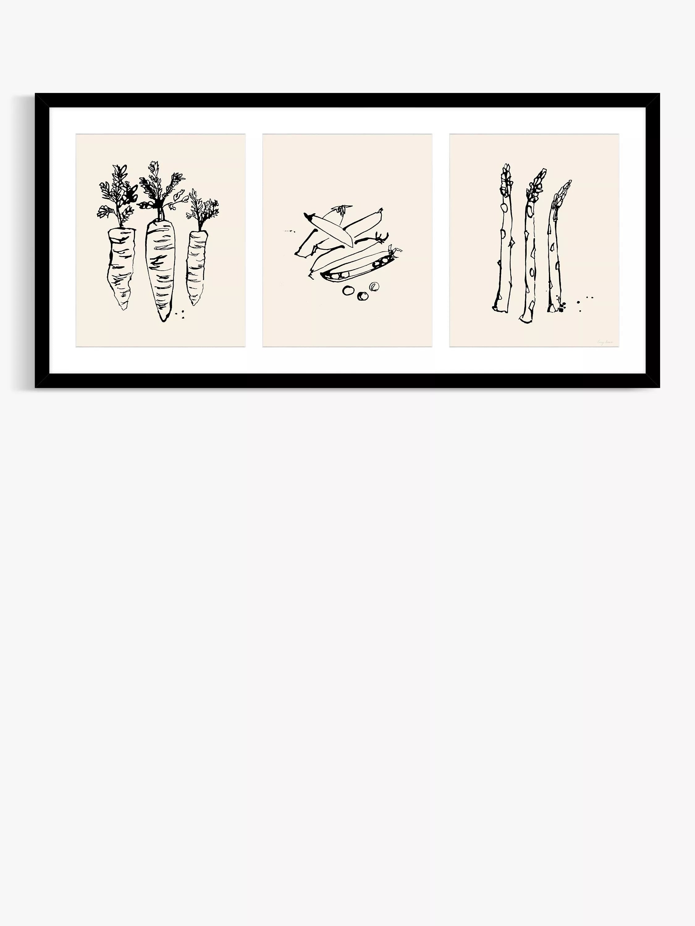 'Garden Trio' for gardeners and vegetable fans, by Lucy Deaner. Made in the UK, this glazed print is mounted in a contemporary black frame, ready to hang on your wall.