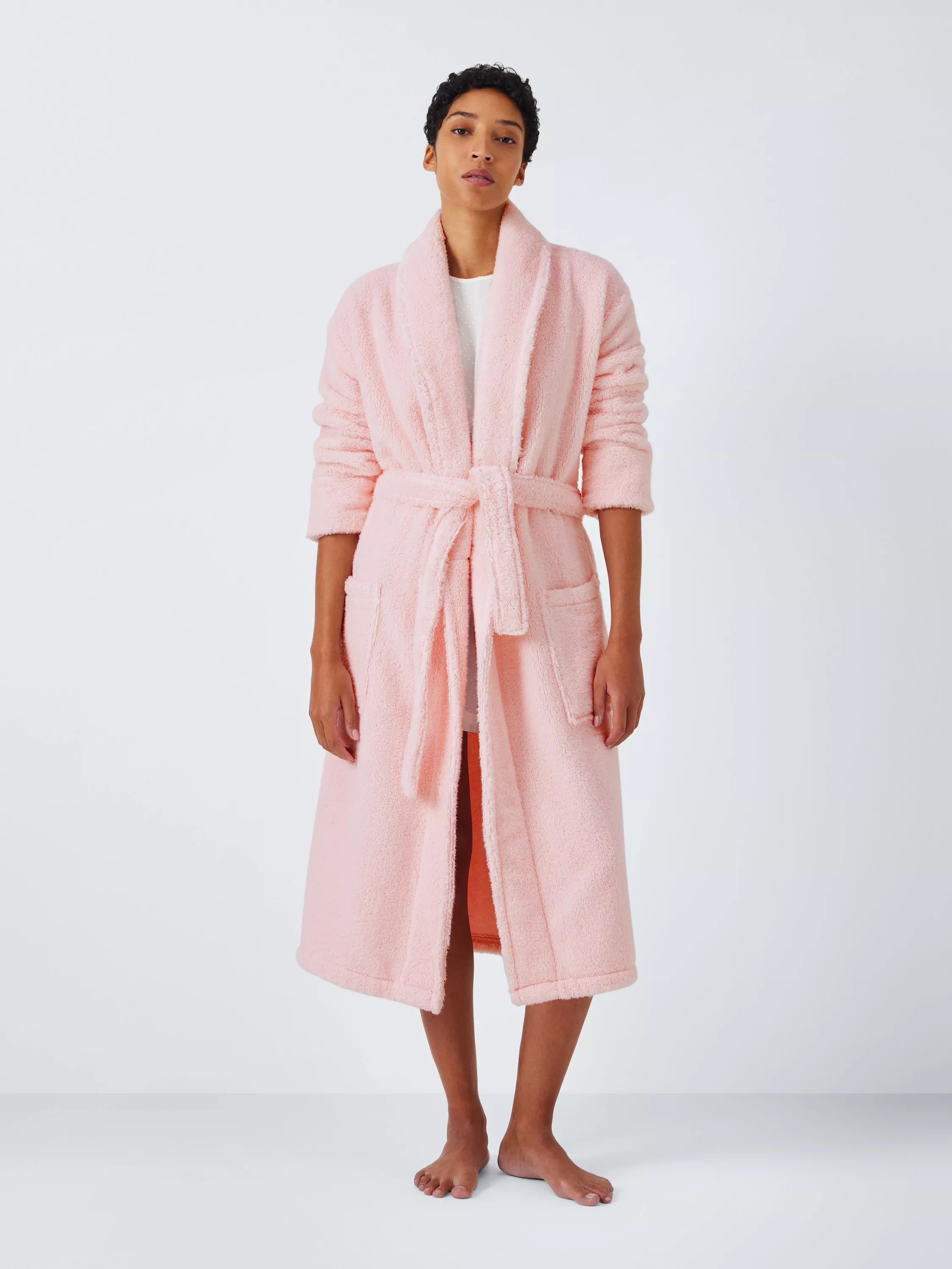 A classic, cosy, and comfy dressing gown made from an organic cotton blend towelling fabric Designed with a fuss-free tie waist and two handy patch pockets.