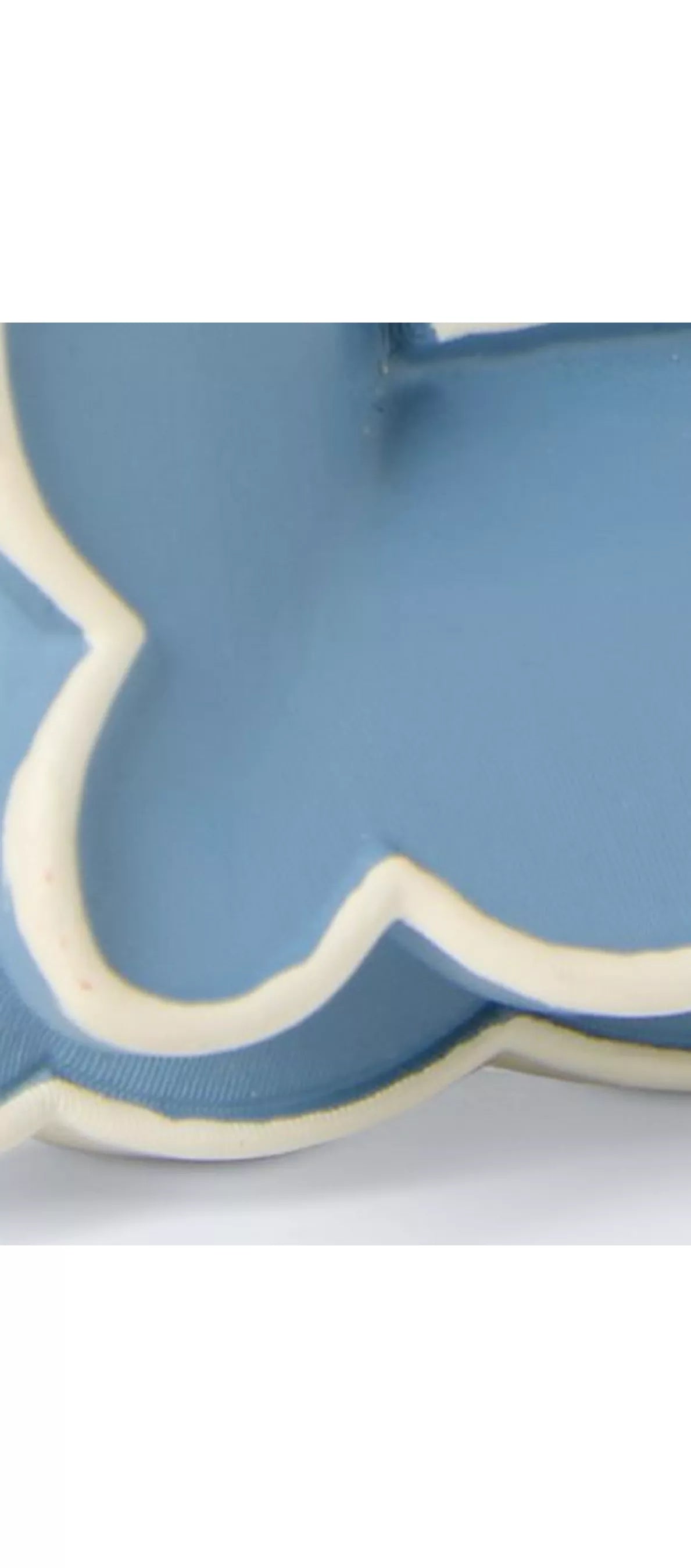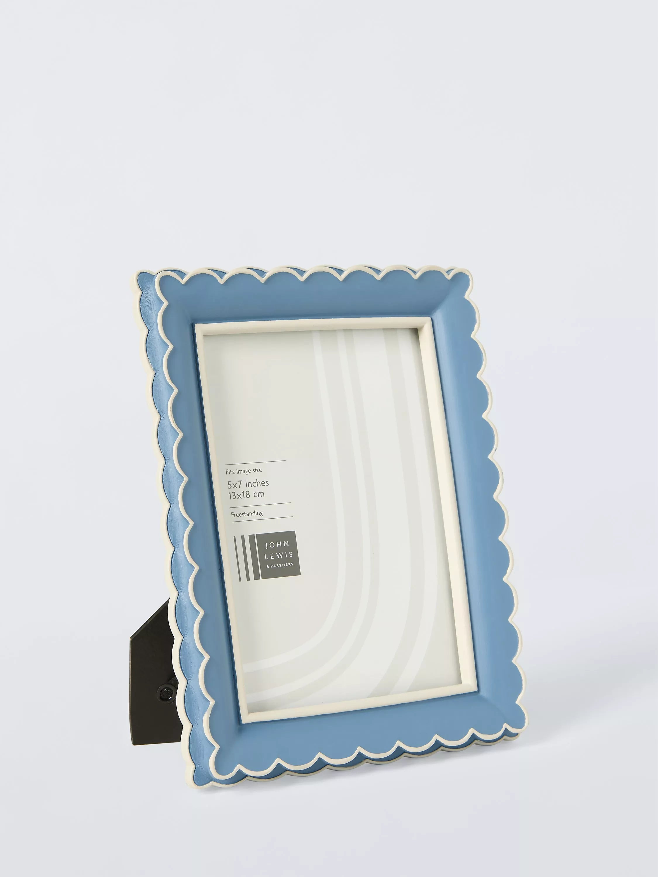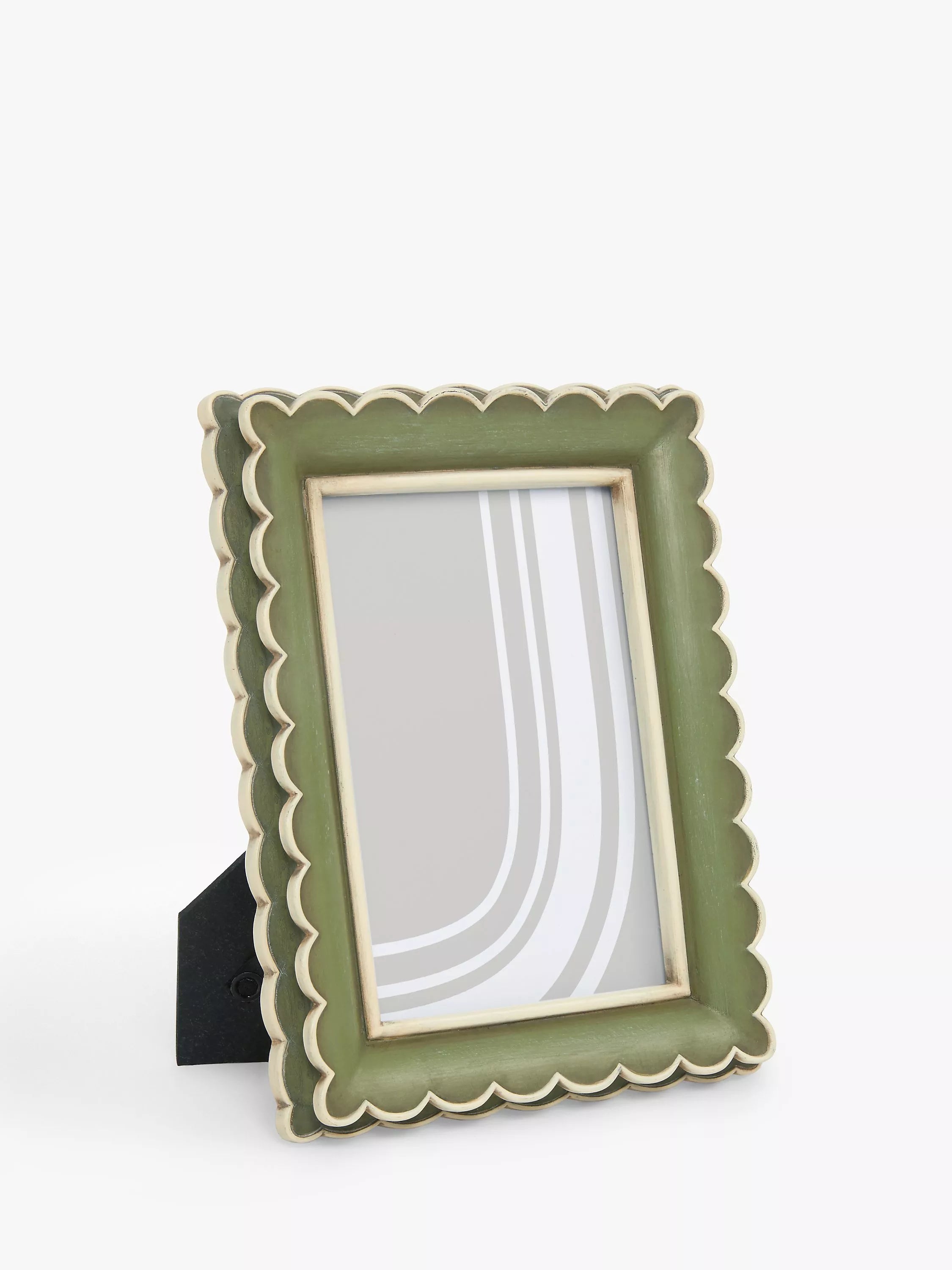 Scallop-shaped with a contrasting trim, this photo frame is hand-painted and completed with a velvet backing. Display freestanding, vertically or horizontally.