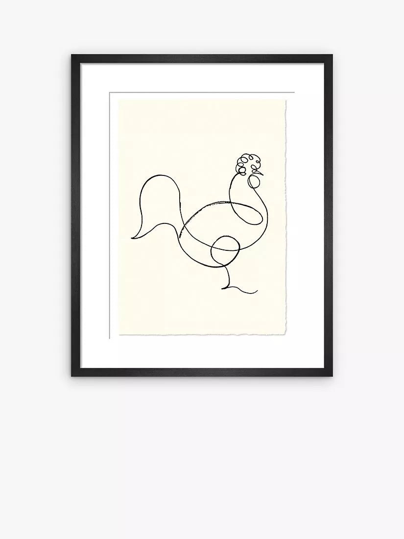 'Coq' by Pablo Picasso. During the early 20th century, a number of artists including Pablo Picasso were influenced by the simple, stylised images produced by non-Western societies. As a result, Picasso produced a set of simplified animal drawings, including 'Le coq' (rooster), executed with unbroken lines.