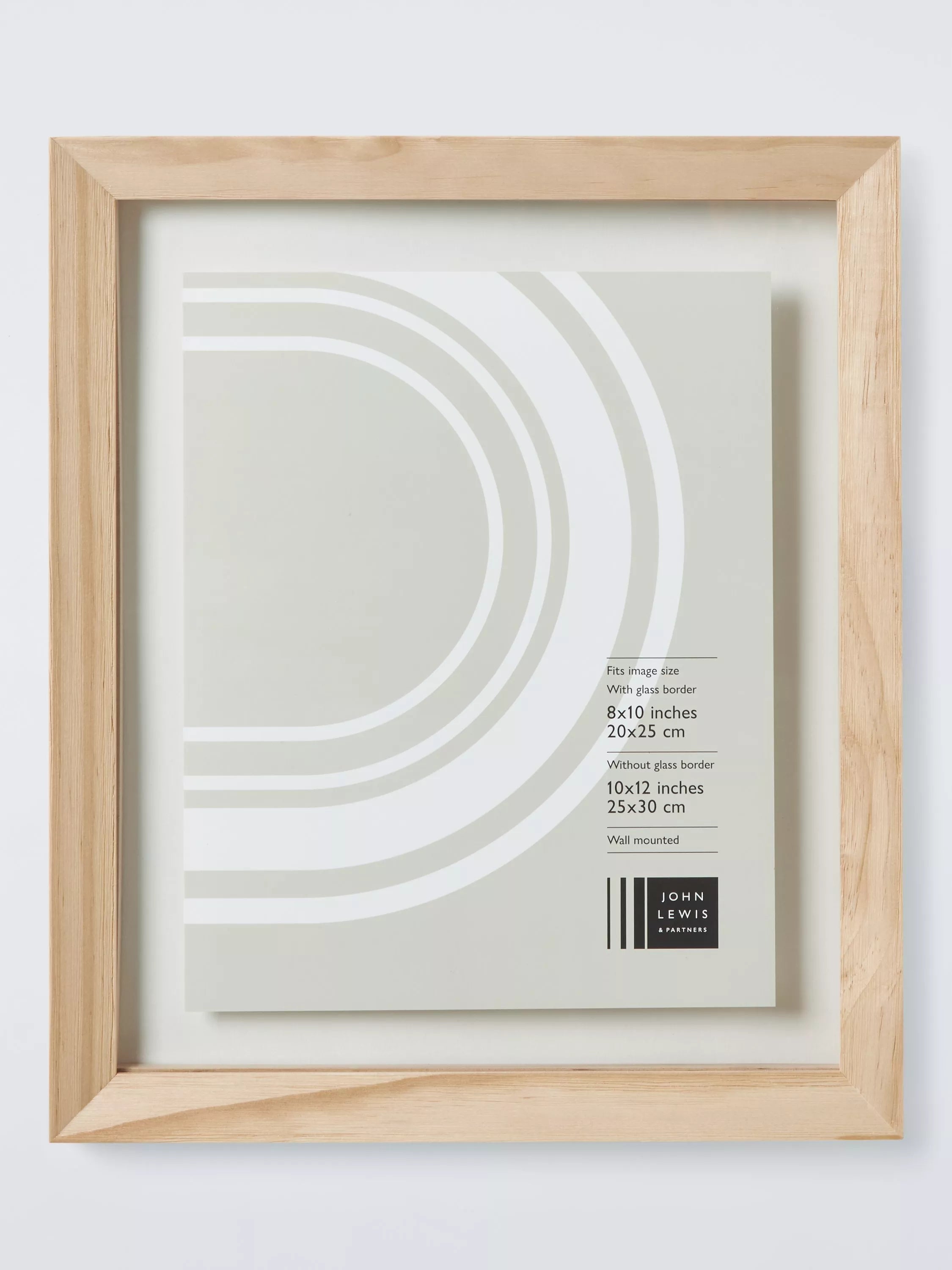 A beautiful pine wood outer frame holds a double glass insert so that your picture is suspended in this floating frame. This allows you to frame any size image within the overall glass size, however small. This design is ideal for framing unusual objects like leaves and pressed flowers as well as standard prints.