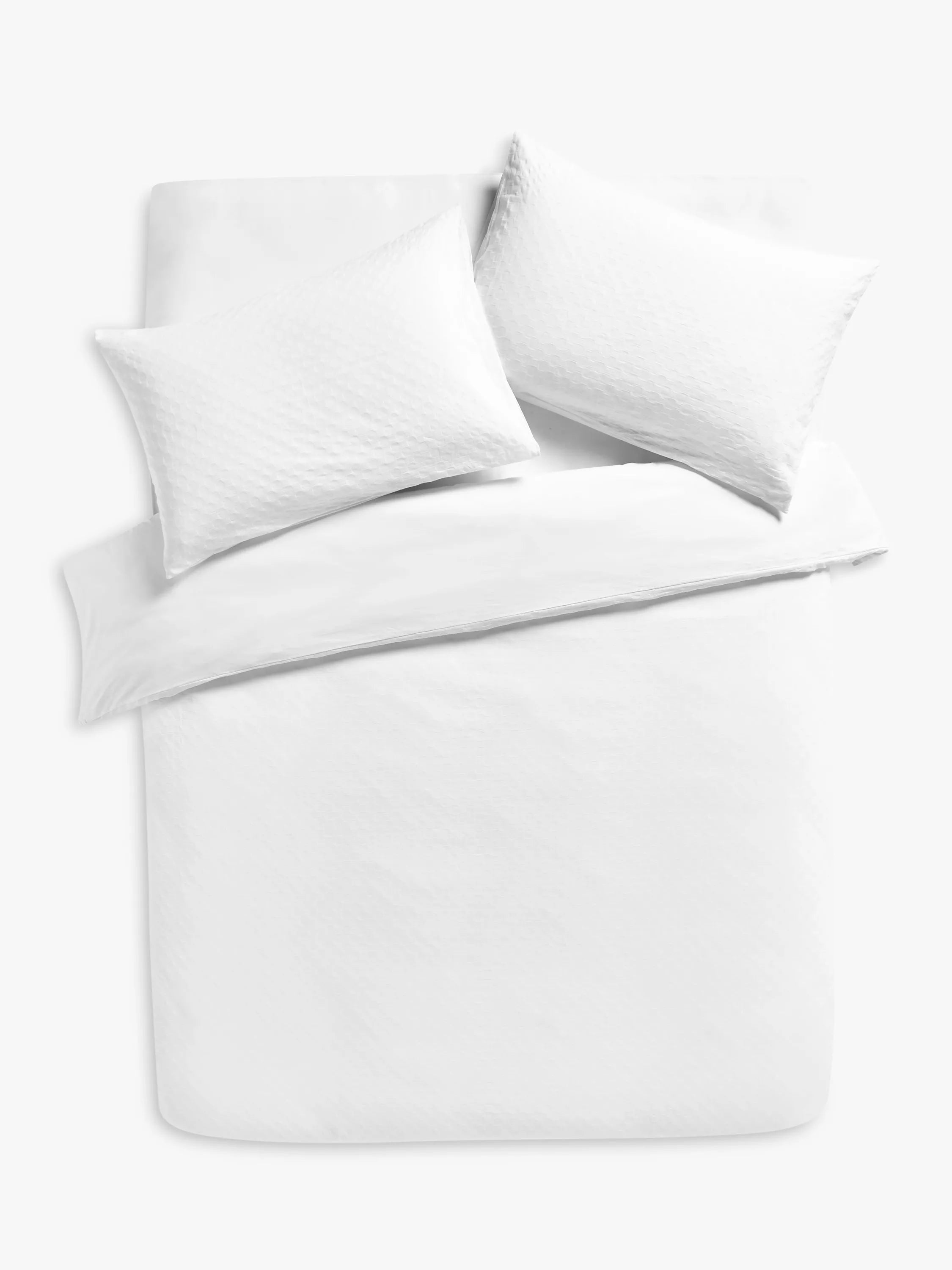 Plain-coloured bedding needn't be boring! These white duvet covers and pillowcases have a geometric seersucker spot texture for added interest.