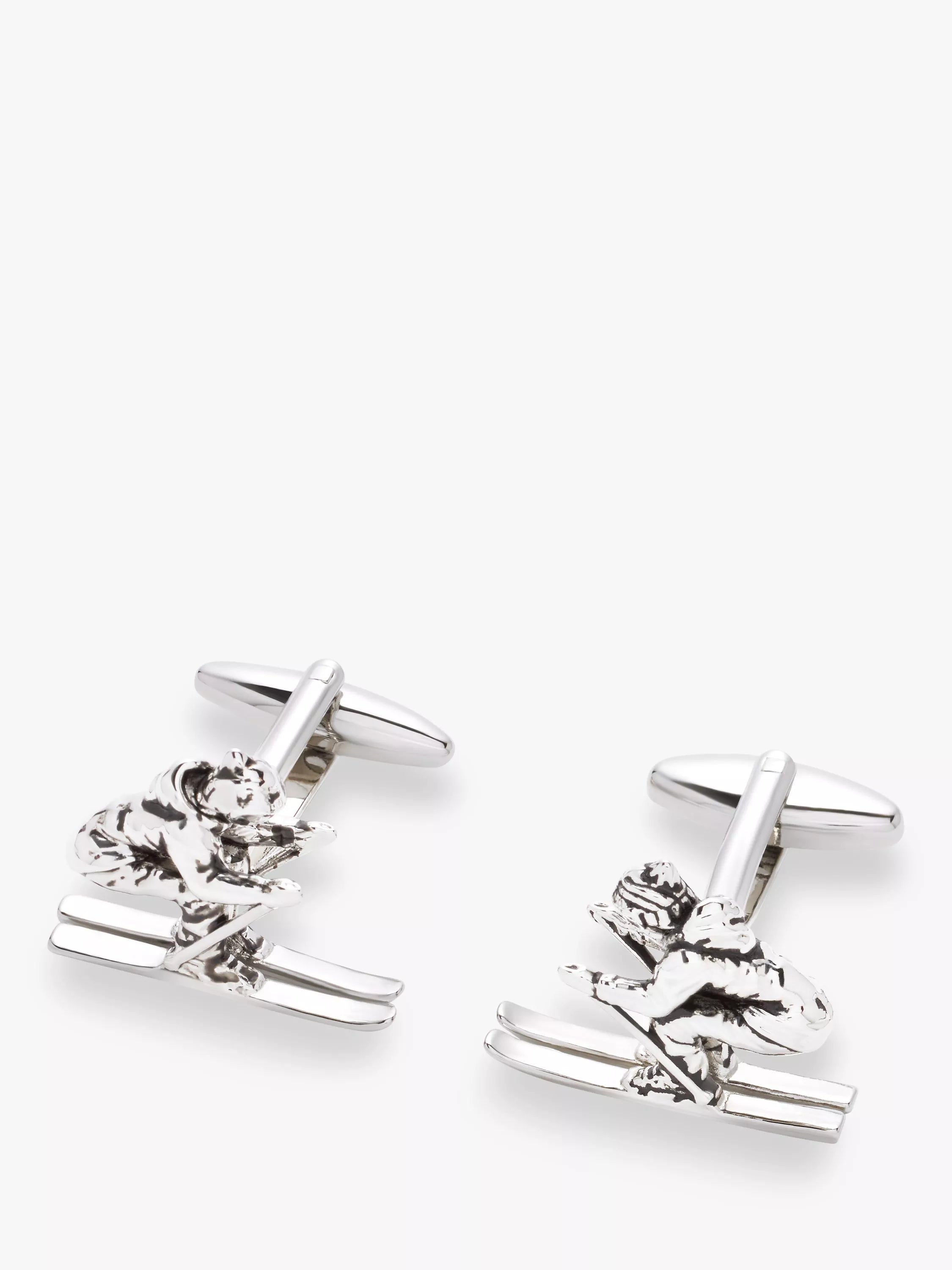 The ideal finishing touch to the formal attire of a wintersports fan, these sartorial cufflinks feature a skier speeding down the slopes.