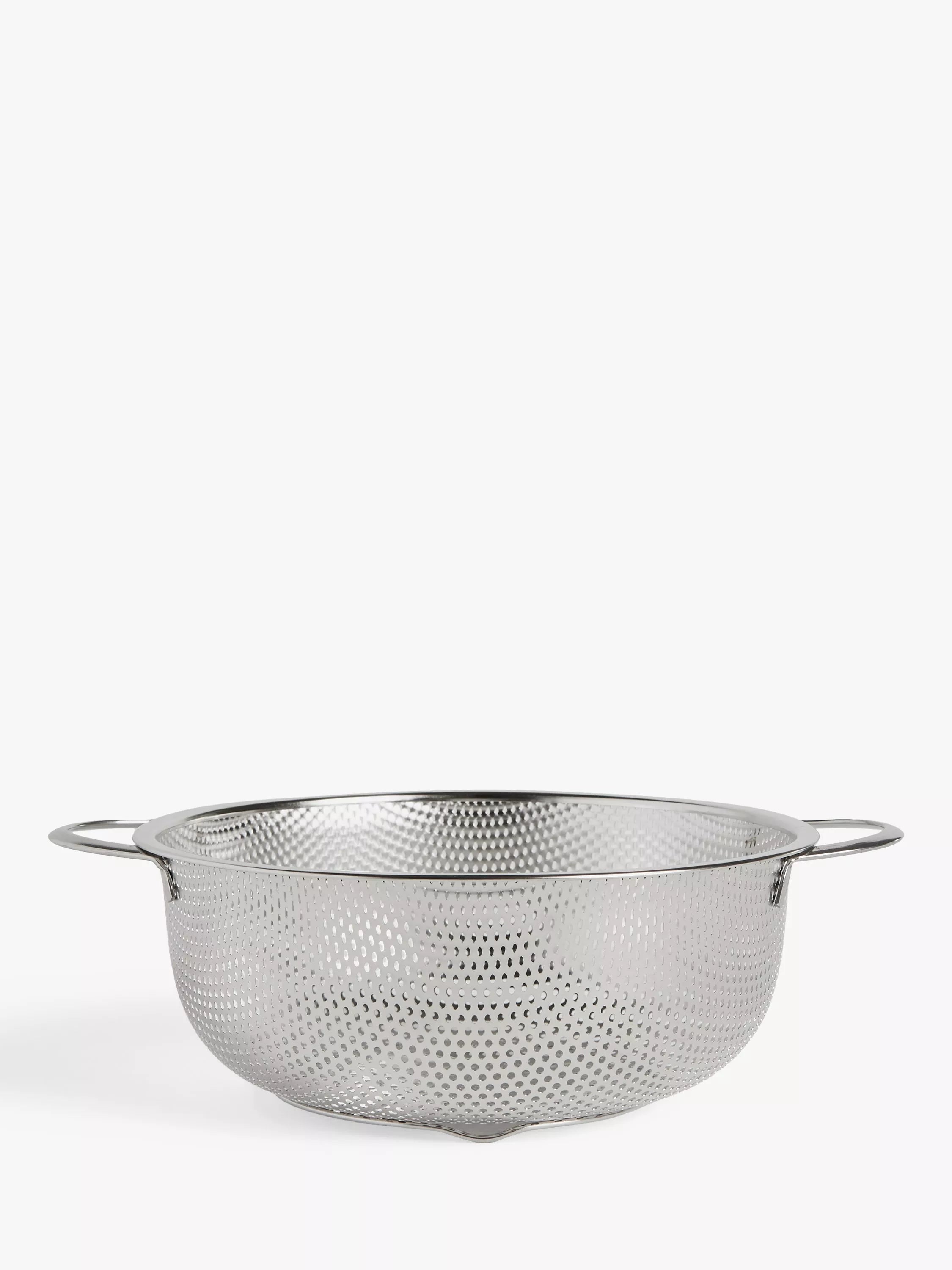 This mesh-style stainless steel colander comes with easy-grip side handles for draining tins and pasta. Smaller than standard colander holes, the mesh also works for rinsing rice and sieving stock.