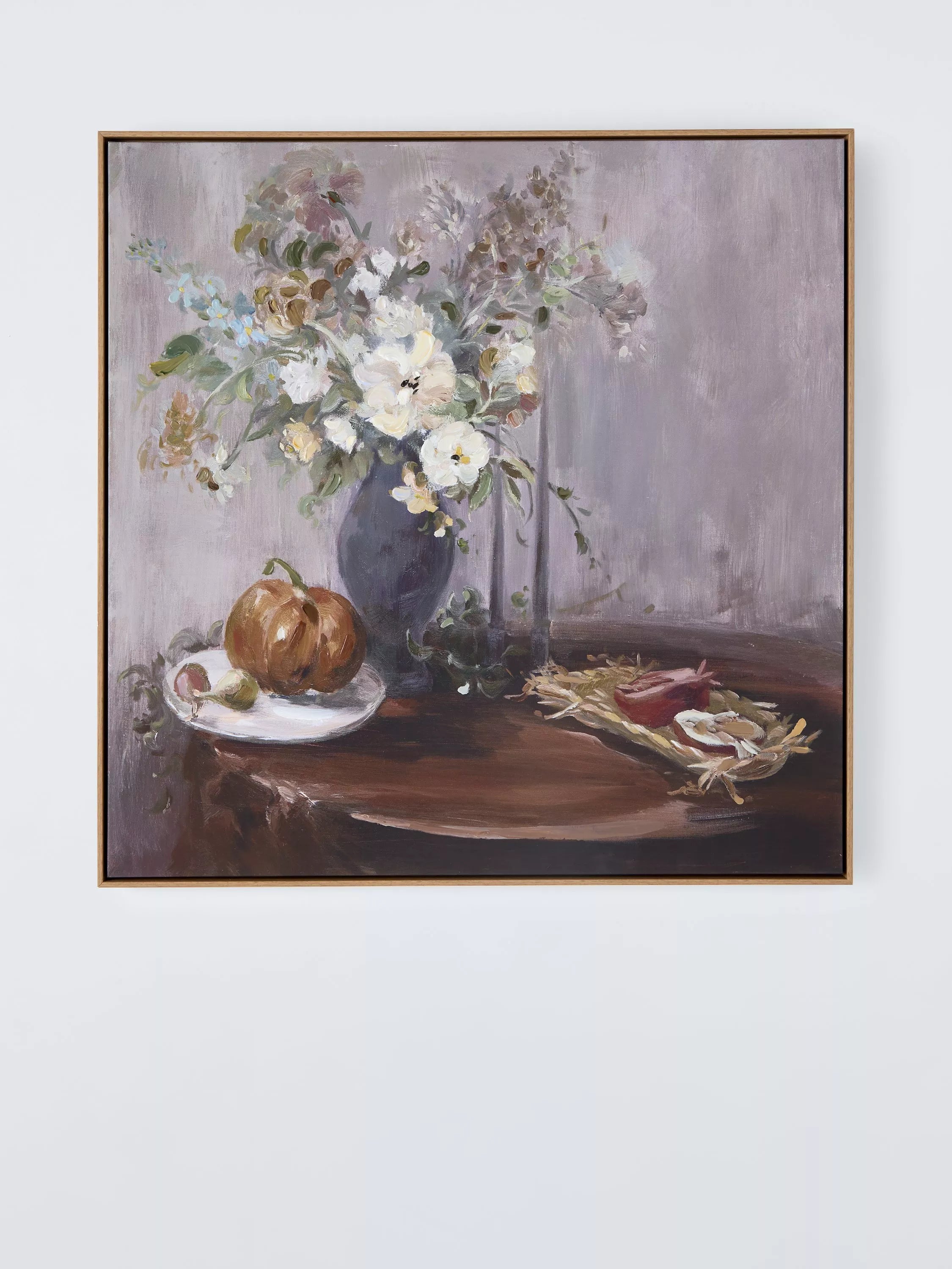 Still life tablescape, printed on canvas. Presented in a wood-effect frame, ready to hang on your wall.
