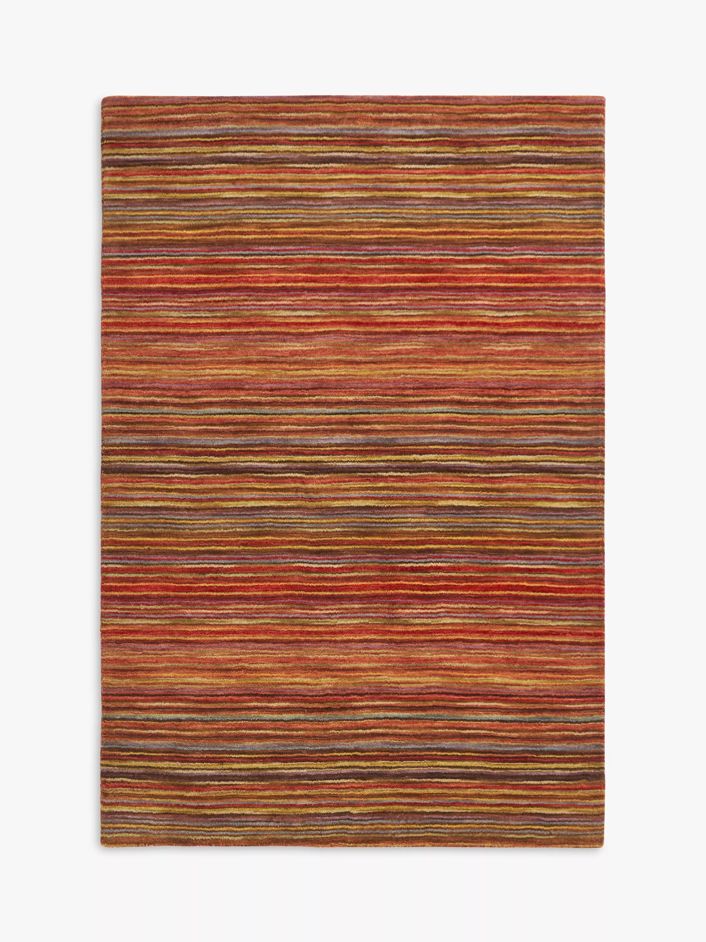 Inspired by traditional rug design, the rich colours of this rug offer an inspiring take on a classic stripe pattern. Offered in 100% wool for a durable yet soft feel, the mixed colour palette will make this a vibrant addition to a living or bedroom.