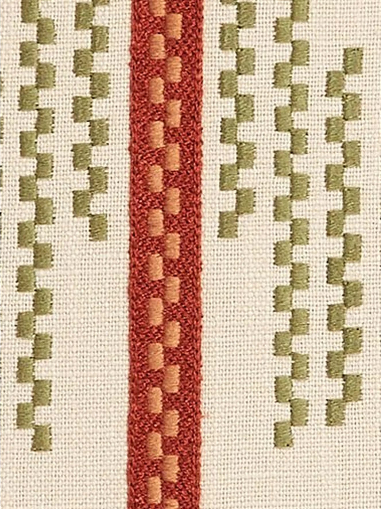 The geometric design of this cushion blends computerised embroidery with patchwork.