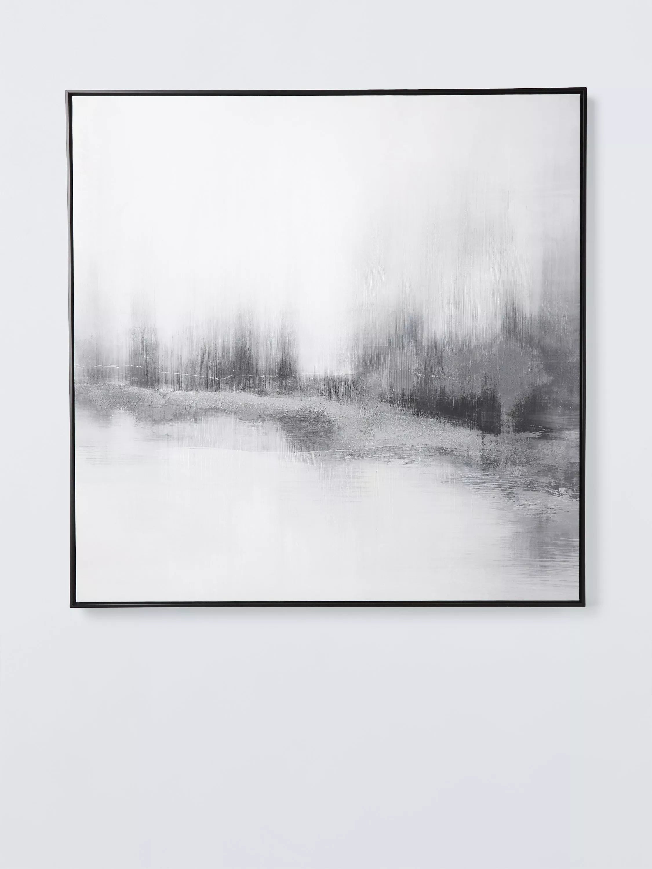 Wintry abstract and textured canvas print, with hand-painted detailing. Framed and ready to hang on your wall.