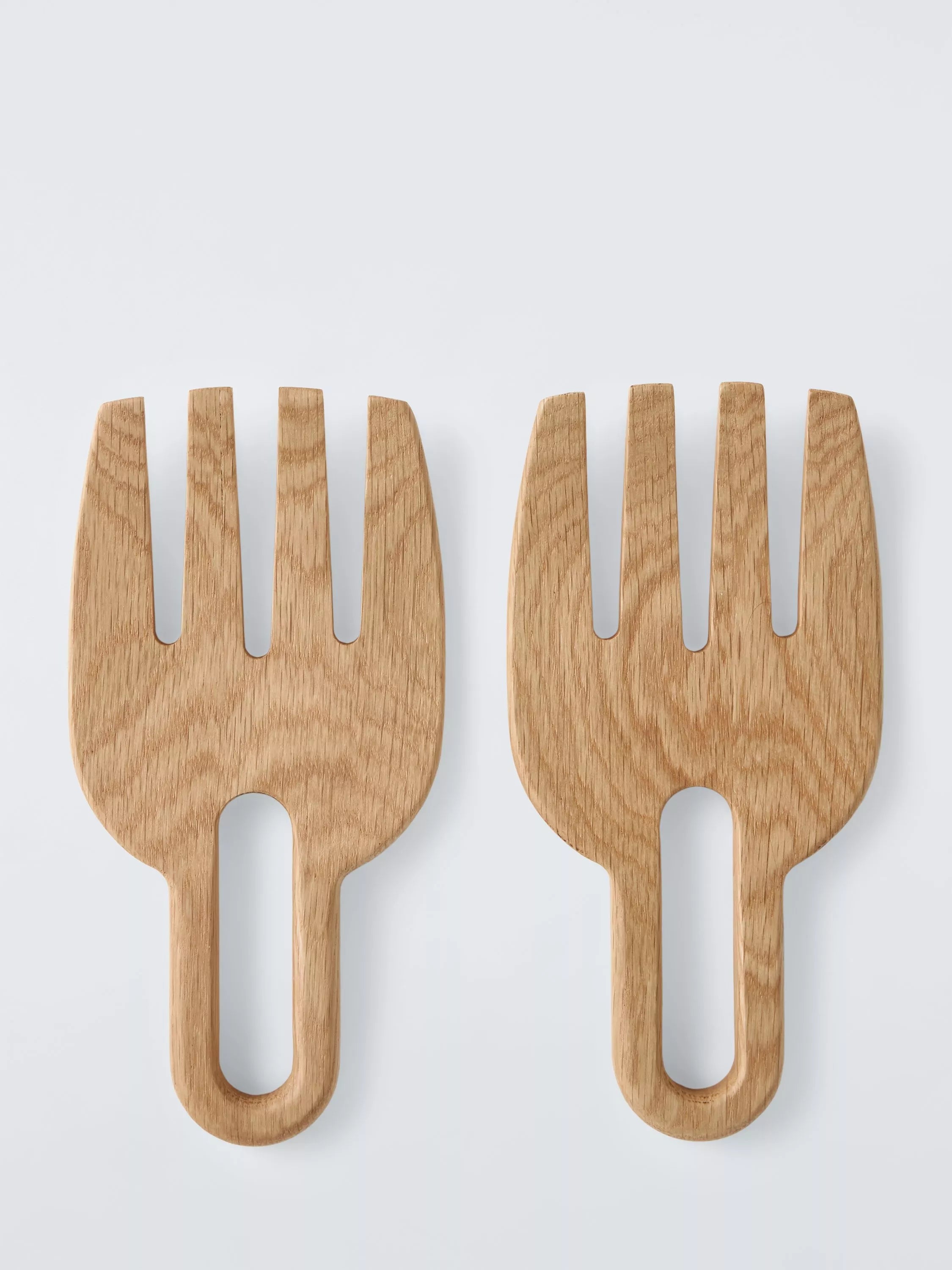 A contemporary design, these salad servers are made of beautiful oak wood. Easy to hold and use when mixing and serving salad.