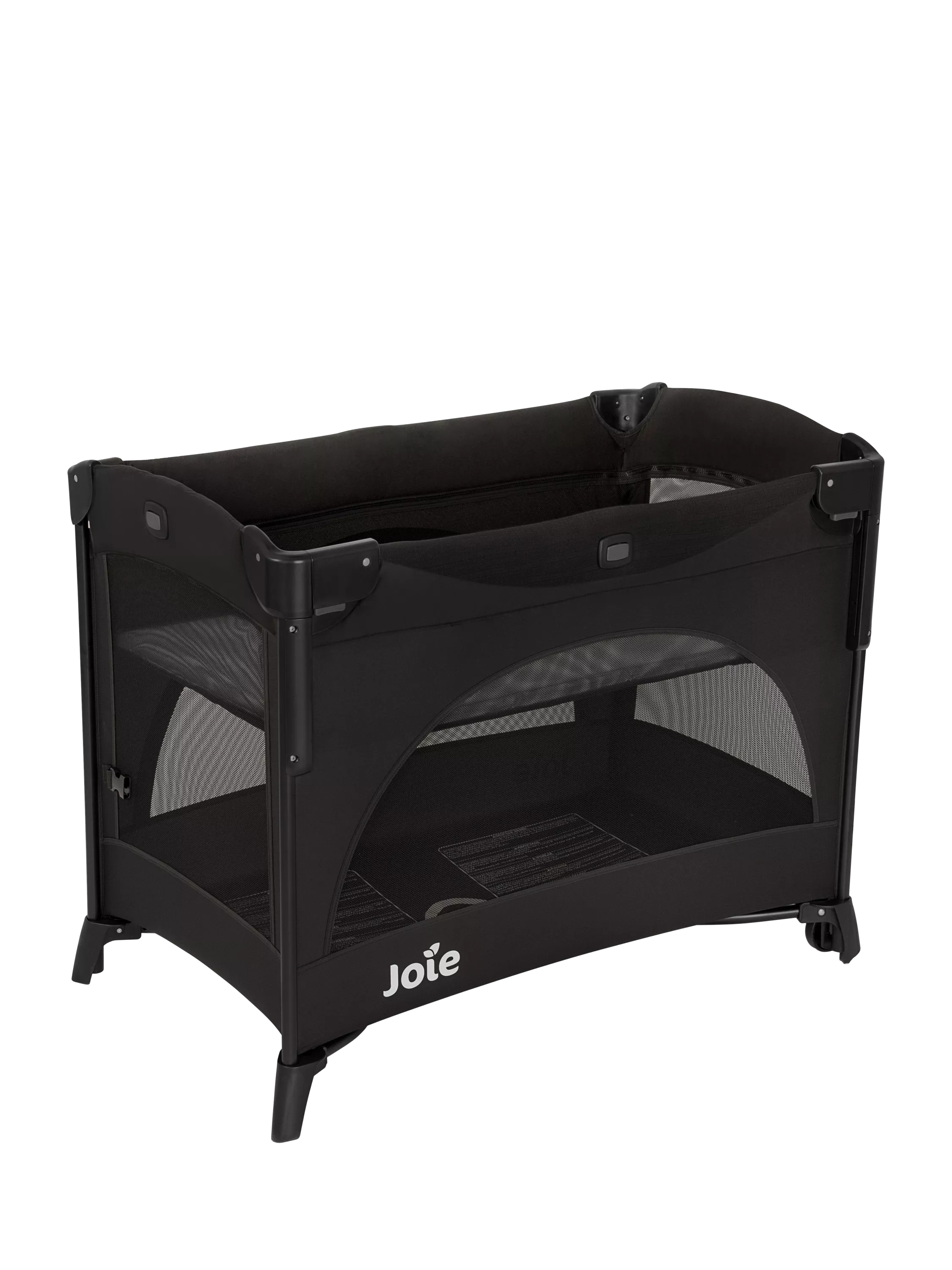 Side-by-side security - Lift and lower side panel to keep baby within reach for easy access feeding, changing or simply peace of mind all night long. Strap and clip attachment locks the cot in tight and keeps the bed and baby snuggled up and secure all night. An easy-to-pack-and-go cot, it folds compactly, stows in the handy travel bag and helps you travel safely and sound.