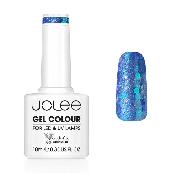 JoLee Gel Polish in Sapphire Dust delivers a vibrant, long-lasting gel effect manicure suitable for salon or home application. This rich blue shade features shimmer and chunky holographic glitter for a refreshing finish. The UV/LED soak-off formula ensures easy removal. As a vegan and cruelty-free product, it meets high standards.